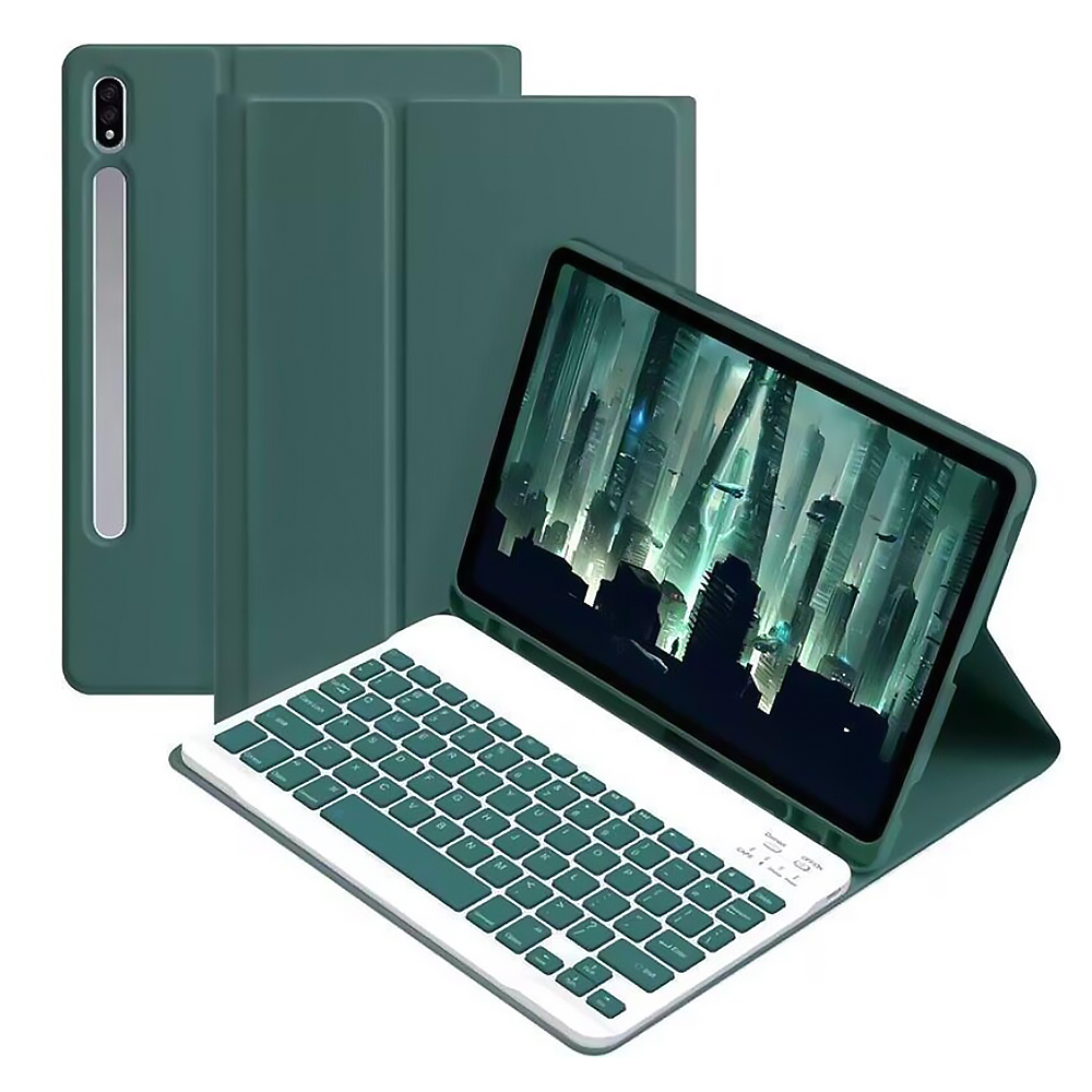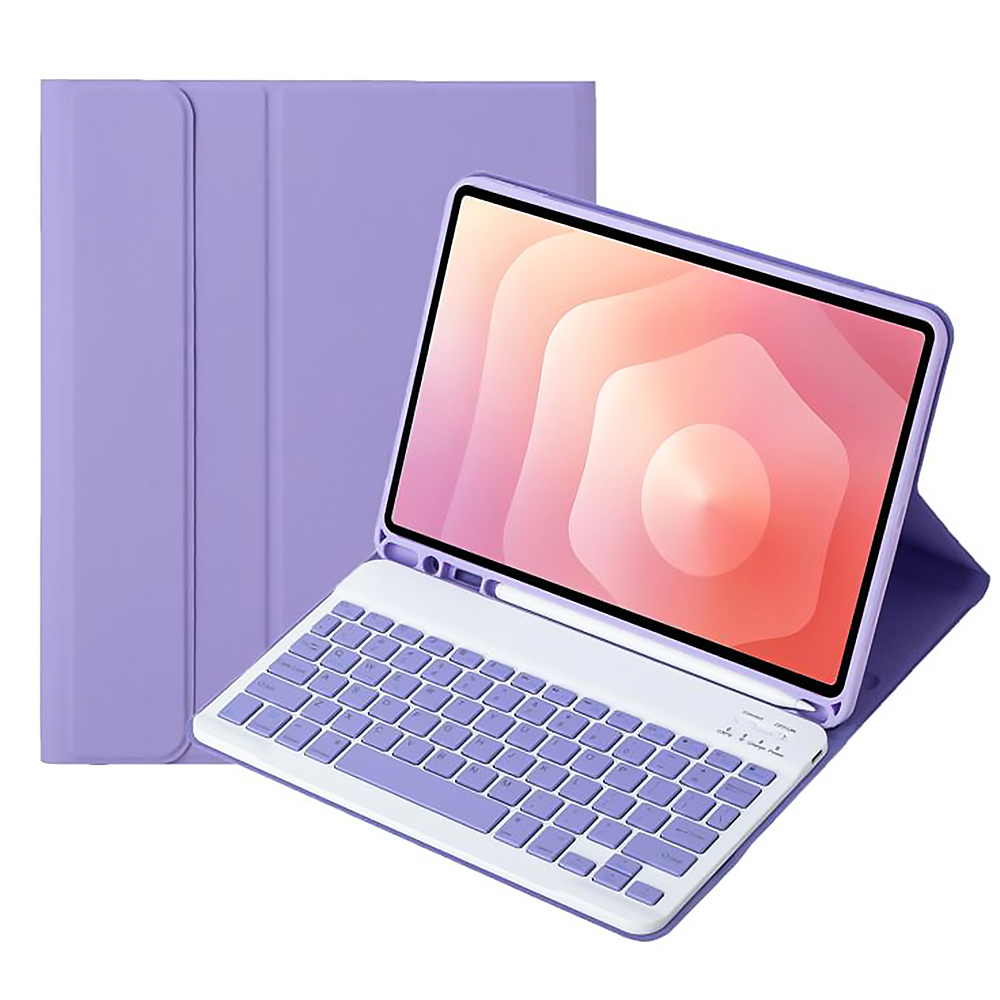 Главное преимущество модели – съемная беспроводная клавиатура с магнитным креплением. Она надежно фиксируется на внутренней поверхности чехла, но при необходимости ее можно легко отсоединить. Клавиатура подключается через Bluetooth и обеспечивает стабильную работу на расстоянии до 10 метров, совместимой не только с планшетом, но и со смартфонами или ПК. Элегантный дизайн в сочетании с практичностью делает этот чехол незаменимым аксессуаром для тех, кто ценит стиль и мобильность.