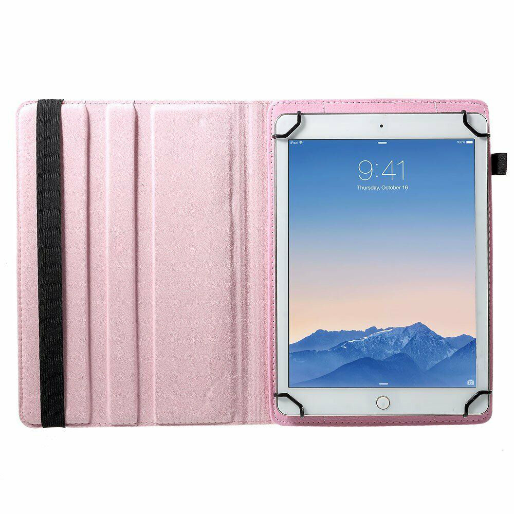 Чехол представлен в оригинальном дизайне, изготовлен из качественной экокожи, которая будет служить Вам долго, а внутренняя сторона обшита мягкой материей, которая надежно защищает экран планшета от царапин. Чехол плотно прилегает к планшету, благодаря четырем крючкам, гаджет дополнительно можно зафиксировать резинкой для большей безопасности.