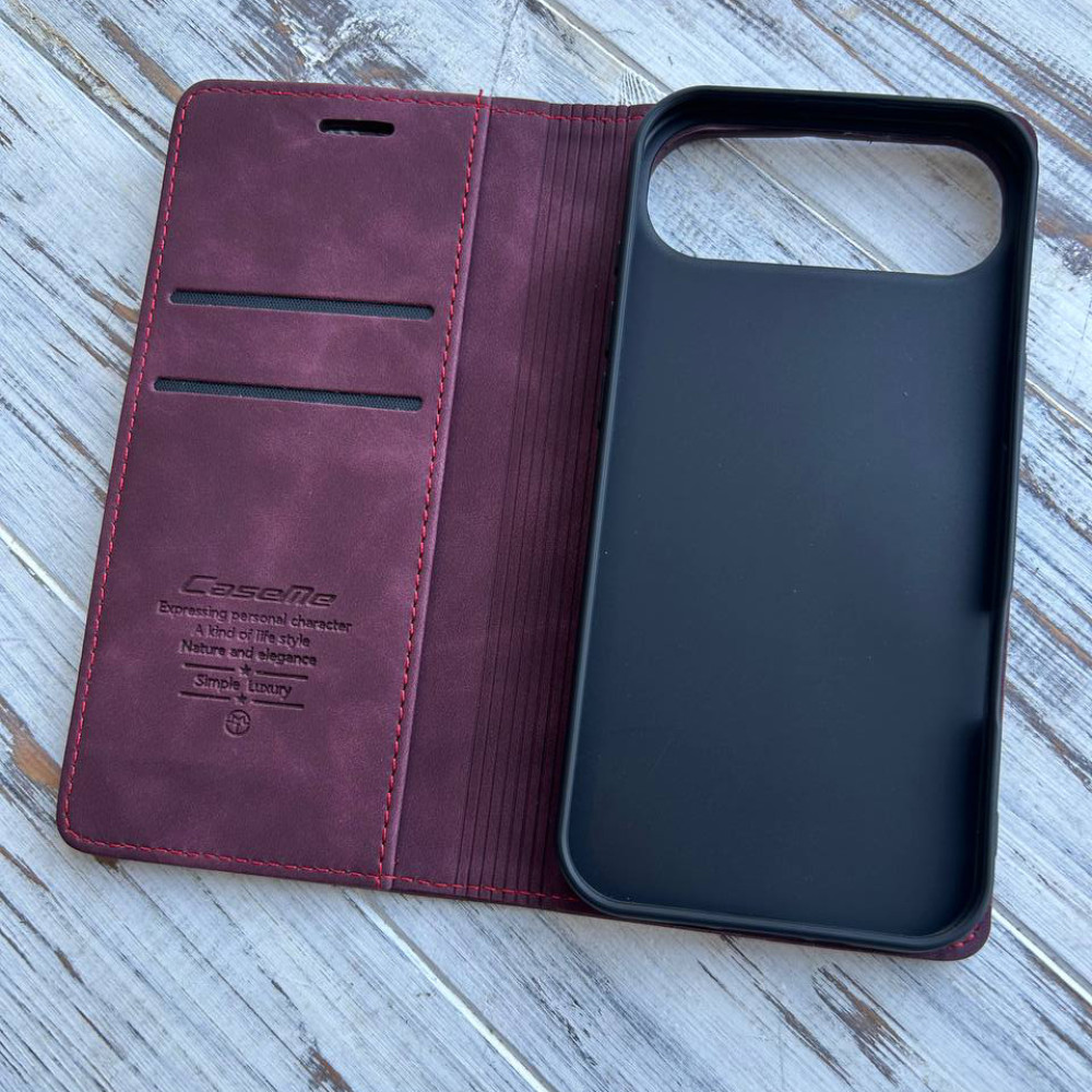 Чехол CaseMe для iPhone 17 Air изготовлен из высококачественной PU кожи. Внутренний силиконовый держатель смягчает удары и надежно фиксирует телефон внутри книжки.