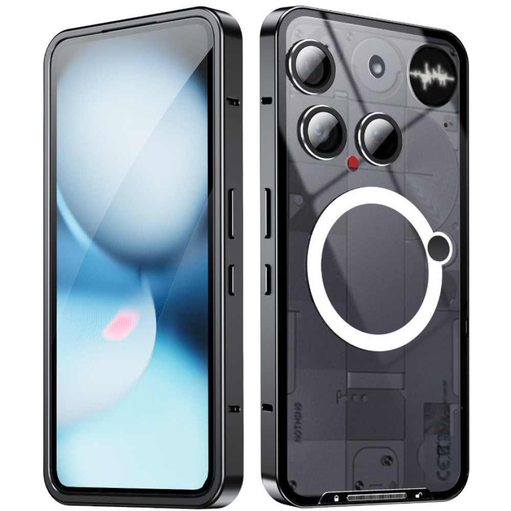 Чехол накладка Metal Glass Ring для Nothing Phone 3 с металлическим кольцом и дополнительной защитой на камеру черный