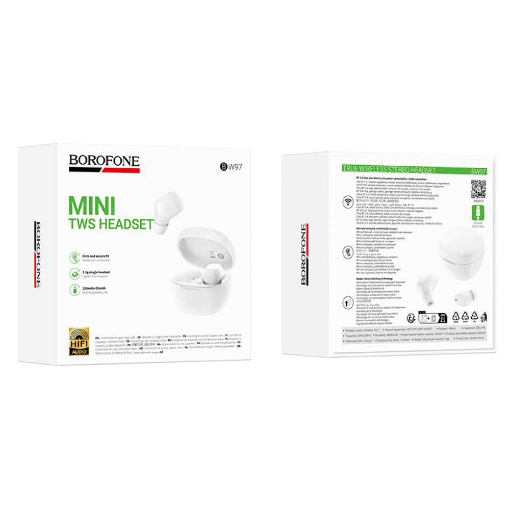 Наушники BOROFONE BW97 Clear обеспечивают стабильное Bluetooth подключение и беспроводную свободу движений. Они дарят чистое и сбалансированное стереозвучание с глубокими басами, что делает их идеальными для музыки, видео и звонков.