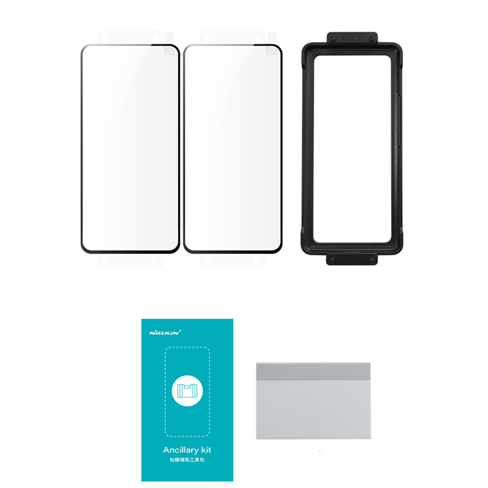 В комплект входят две пленки, салфетка для очистки экрана, специальный шпатель из микрофибры и пластиковая рамка, которая значительно упрощает процесс наклеивания. Это решение позволяет достичь идеального прилегания пленки к экрану без пузырей.