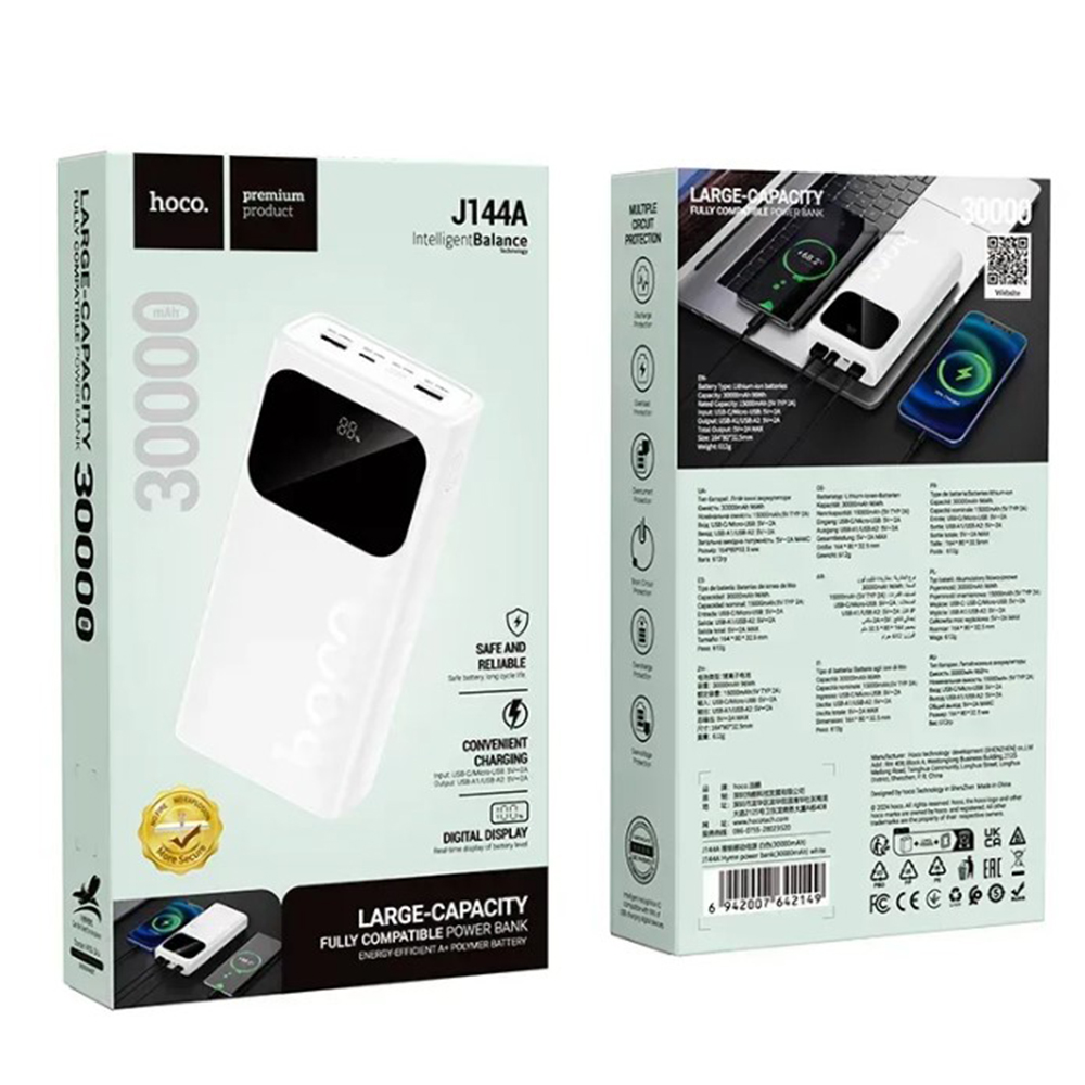 Power Bank Hoco J144A Hymn — мощный внешний аккумулятор с ёмкостью 30000 мАч.