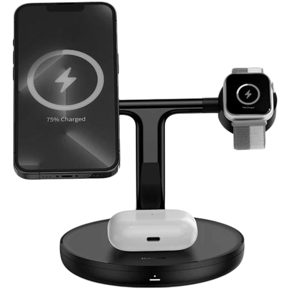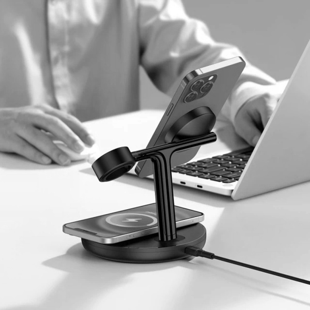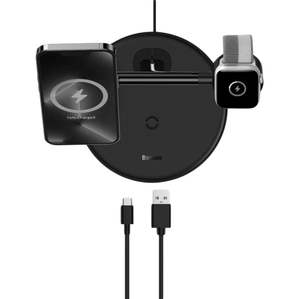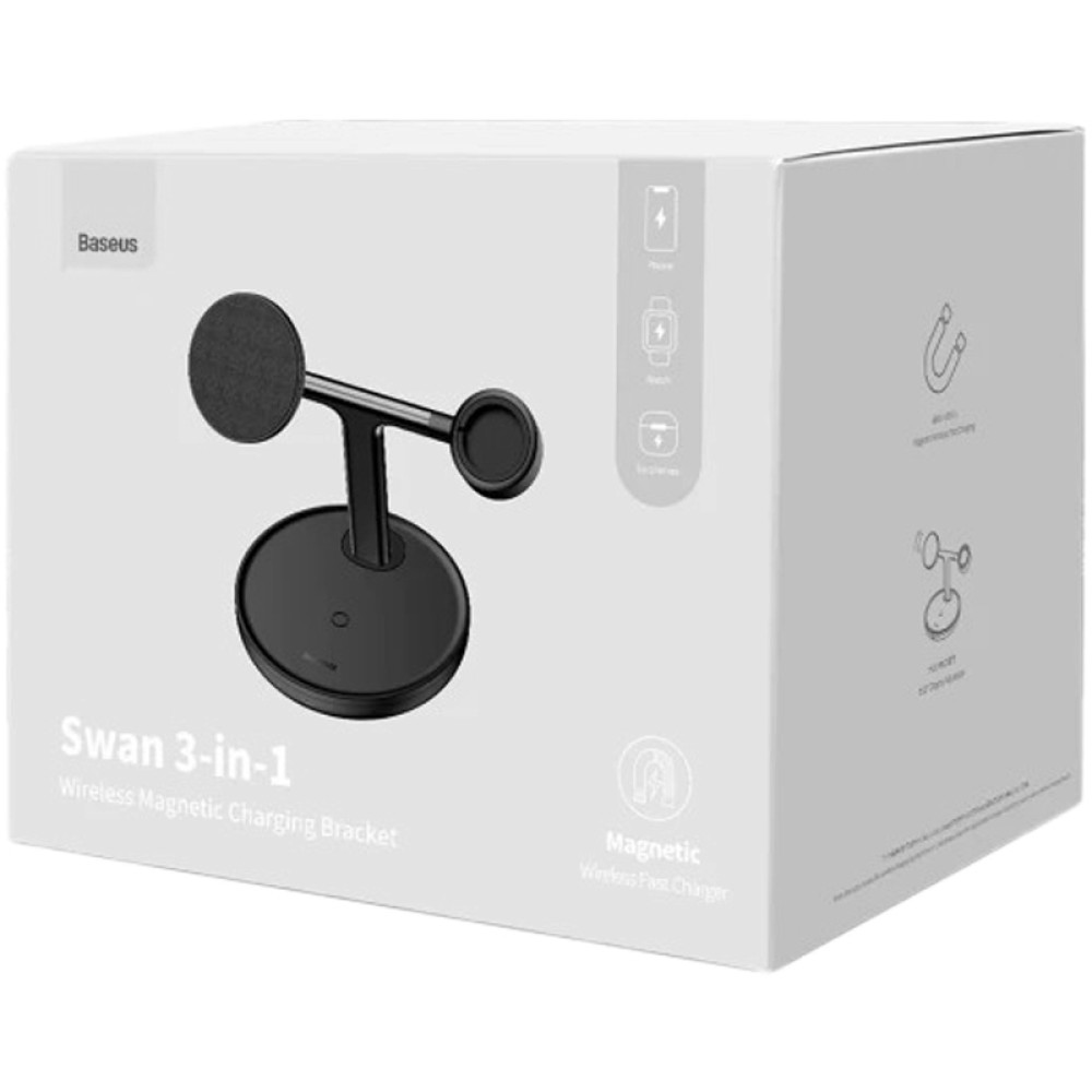 Беспроводное зарядное устройство для Baseus Swan 3in1 (20W) – это современное и функциональное решение для подзарядки различных устройств. Эта модель отличается тем, что может заряжать одновременно до трех устройств – например: смартфон (с поддержкой MagSafe или металлической наклейкой для крепления), Apple Watch и беспроводные наушники, что делает ее идеальной для тех, кто использует несколько устройств каждый день. Аксессуар обеспечивает быструю зарядку с максимальной мощностью до 15 Вт, что позволяет сократить время, затрачиваемое на подзарядку устройств. Упрощает процесс подключения и устраняет необходимость подключения кабеля к каждому устройству отдельно. Благодаря компактному размеру и элегантному дизайну легко можно поместить на любой стол или тумбу, сохраняя при этом эстетику интерьера, в вертикальном и горизонтальном положении, и даже задавать угол наклона до 20 градусов.