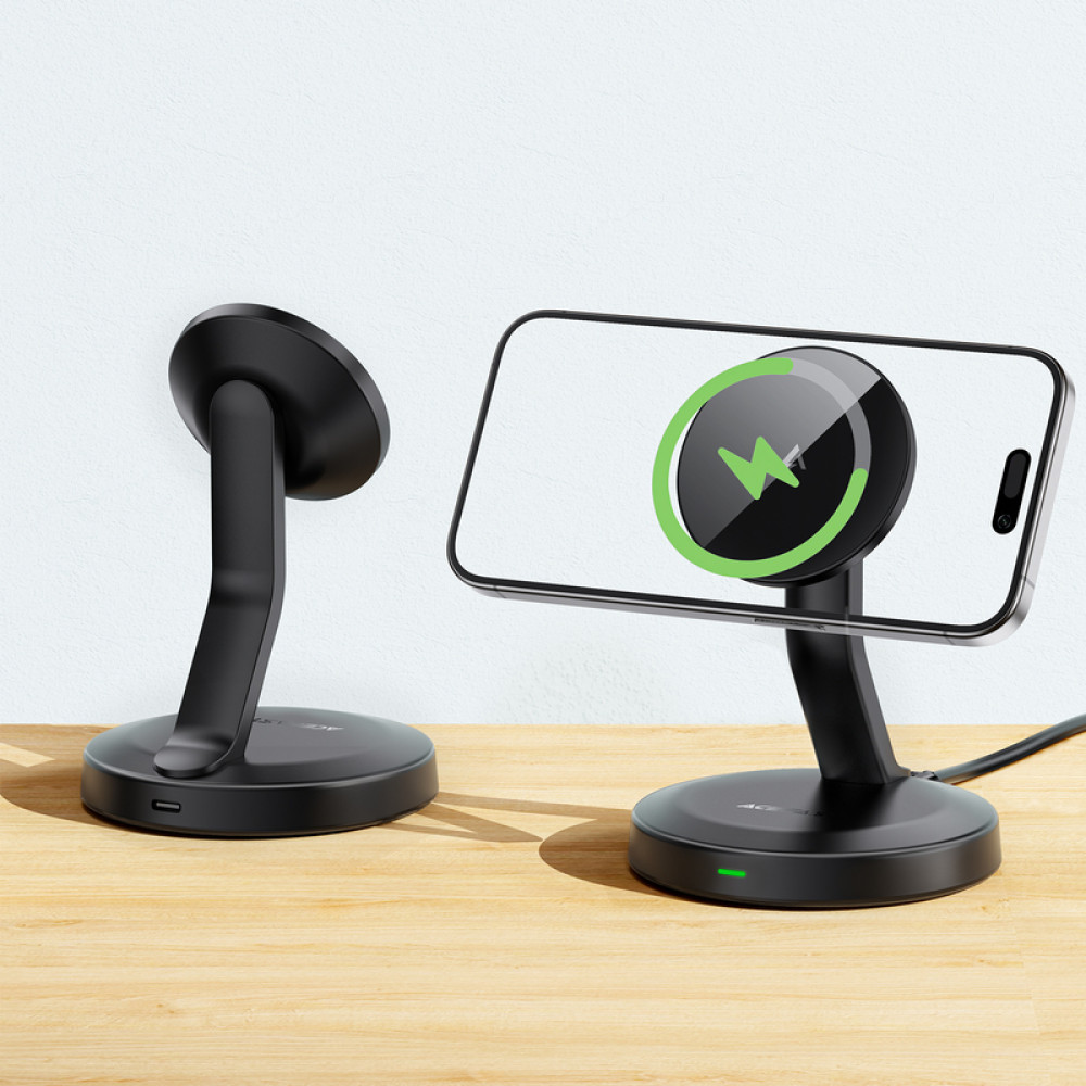 ACEFAST E26 — беспроводное зарядное устройство, имеющее функцию подставки для телефона и беспроводной зарядки.