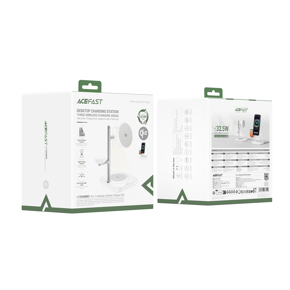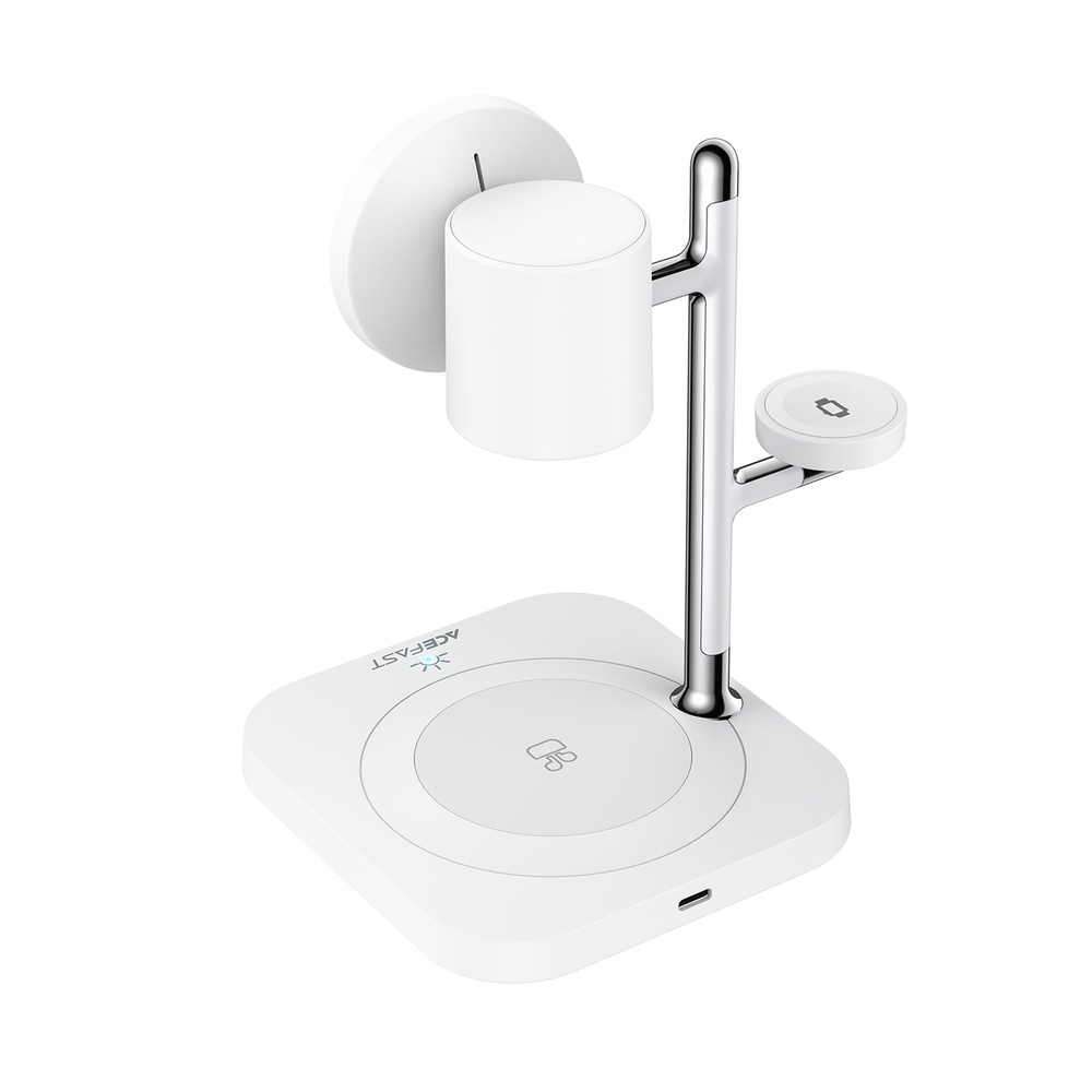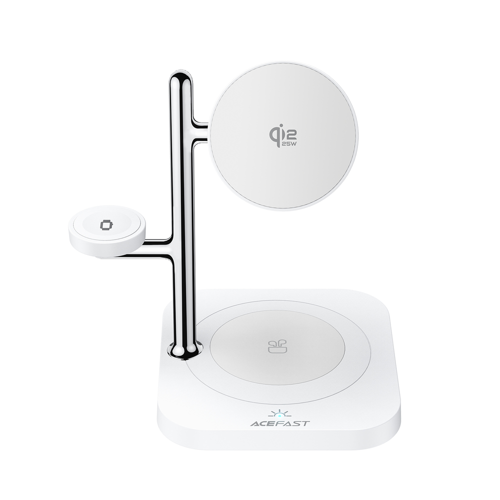 Современная настольная зарядная станция ACEFAST E39 позволяет одновременно заряжать смартфон, беспроводные наушники и Apple Watch. Поддержка стандарта Qi2 обеспечивает быструю и стабильную беспроводную зарядку смартфонов мощностью до 25W, а магнитный крепеж помогает легко и точно размещать телефон на зарядной поверхности.