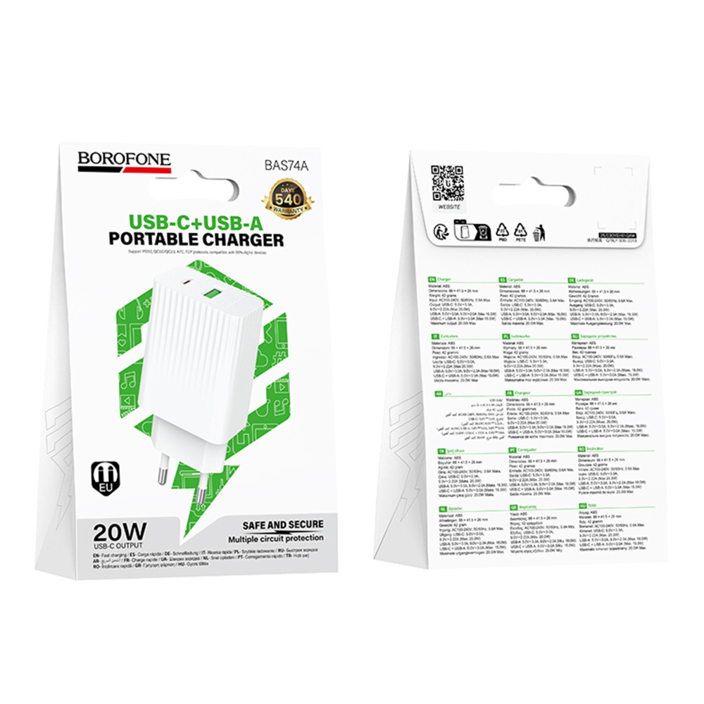 Сетевое зарядное устройство для Borofone BAS74A PD20W/QC18W — эффективное питание для двух устройств.