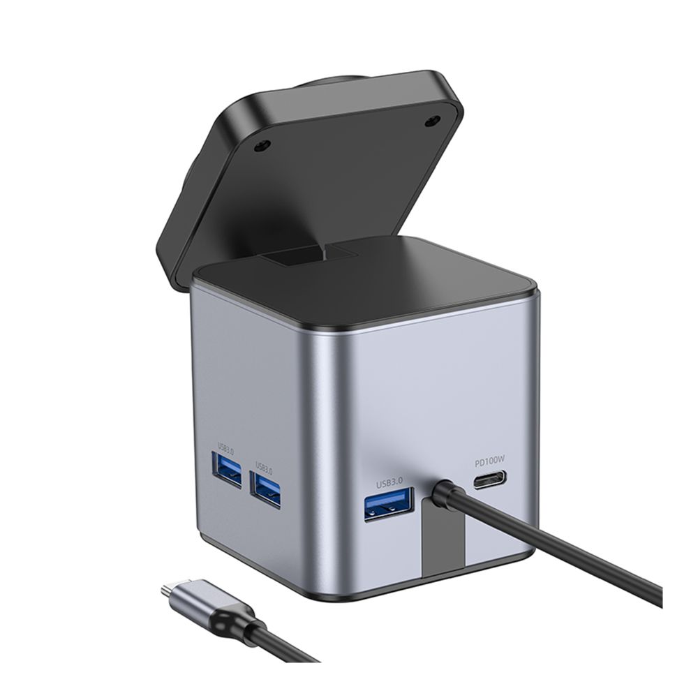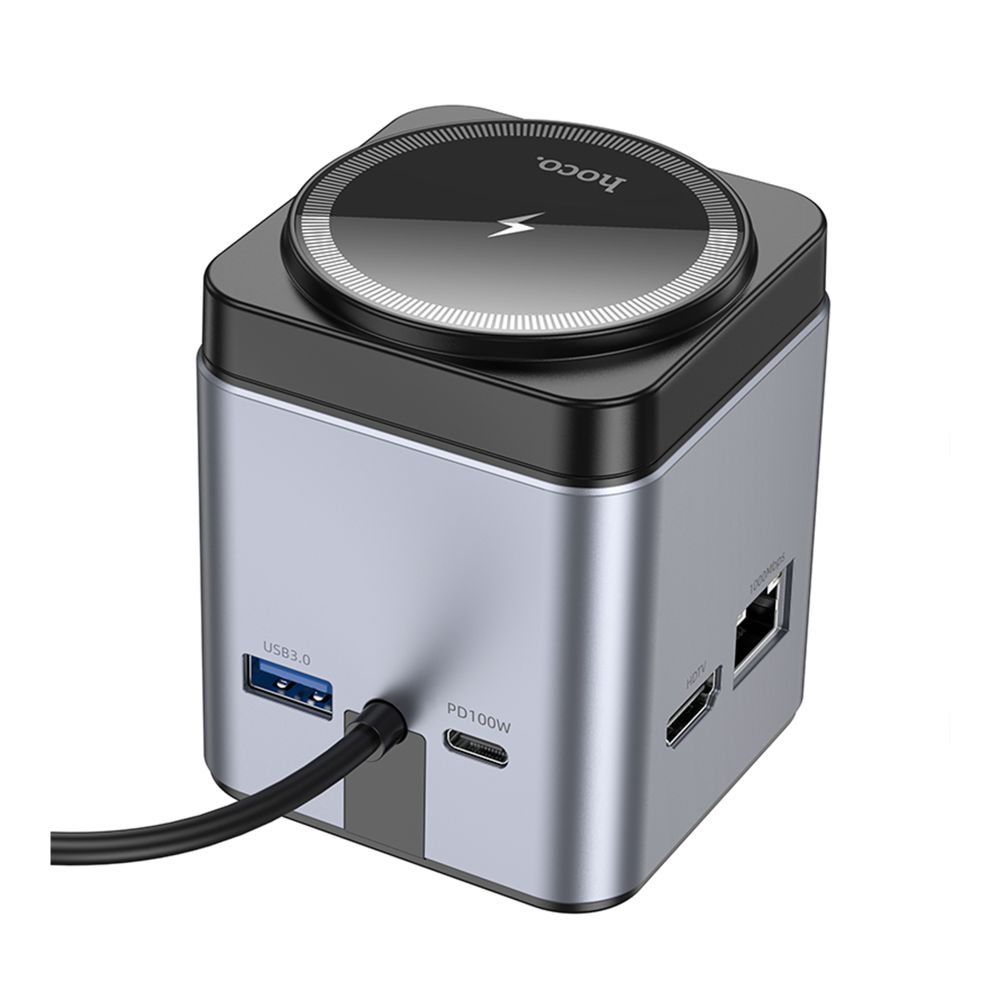 USB-хаб Hoco HB49 — это компактная док-станция в форме куба, сочетающая беспроводную зарядку, порты USB и интерфейсы для подключения периферии. Универсальное решение для ноутбуков и смартфонов.