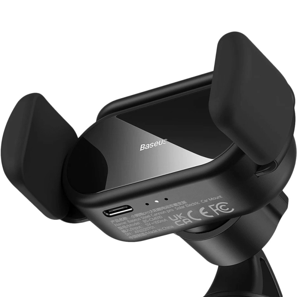 Автомобильный держатель Baseus очень удобен в использовании и оснащен небольшой солнечной панелью, что позволит зарядить смартфон, когда тот разрядится! Он также имеет встроенный резервный аккумулятор, который приходит на помощь в пасмурные дождливые дни. Аксессуар также отличается чрезвычайной крепостью и совместимостью со смартфонами 5,4-6,7".Удобство использованияАвтомобильный держатель Baseus Steel Cannon Pro Solar Electric оснащен современным удобным креплением, с помощью которого он фиксируется на автомобильную панель приборов. Сам смартфон также крепко и надежно фиксируется в самом аксессуаре и его можно использовать одной рукой. Просто положите в него телефон, и его зажимы автоматически заблокируются. Чтобы забрать телефон и разблокировать держатель, просто нажмите кнопку, которая расположена на задней части. Аксессуар идеально подходит для смартфонов с диагональю 5,4-6,7". Таким образом смартфон будет надежно зафиксирован и готов даже к экстремальным дорогам.Надежный источник питанияНужно подзарядить смартфон во время дороги? Не проблема! Автомобильный держатель оборудован небольшой, но мощной солнечной панелью, отвечающей за обеспечение его энергией. День обещает быть облачным, дождливым? Ничего страшного – аксессуар имеет встроенный аккумулятор емкостью 120 мАч, который обеспечит его питанием практически в любой ситуации. Удобная зарядка аксессуара возможна благодаря входящему в комплект кабелю USB-A – USB-C.Непревзойденная стабильностьБлагодаря тщательно продуманной усовершенствованной конструкции крепления держатель обеспечит вашему смартфону необходимую стабильность. Не беспокойтесь, что ваш телефон пошатнется или упадет и повредится! Аксессуар отлично справится даже на лежачих полицейских и неровных дорогах. Кроме того, нескользящие силиконовые накладки гарантируют большую ударопрочность и защищают ваш смартфон от царапин.Дополнительные удобстваАксессуар очень прост в установке – просто приклейте его к выбранной поверхности. Используемый клей гарантирует стабильную фиксацию, не оставляя следов на приборной панели. Крепление также снабжено шарнирным механизмом, поэтому вы можете установить его под любым углом. Кроме того, благодаря своей компактной конструкции аксессуар не займет много места в вашем автомобиле. Аксессуар также не будет препятствовать доступу к вашему экрану, а специальные отверстия будут обеспечивать эффективное рассеяние лишнего тепла.Основные характеристики:Вход: 5 В 100 мА;Емкость аккумулятора: 120 мАч;Материал: ABS+силикон+алюминиевый сплав;Место установки: панель приборов;Размеры: 80x37x62 мм;Совместимость со смартфонами диагональю 5,4-6,7”.