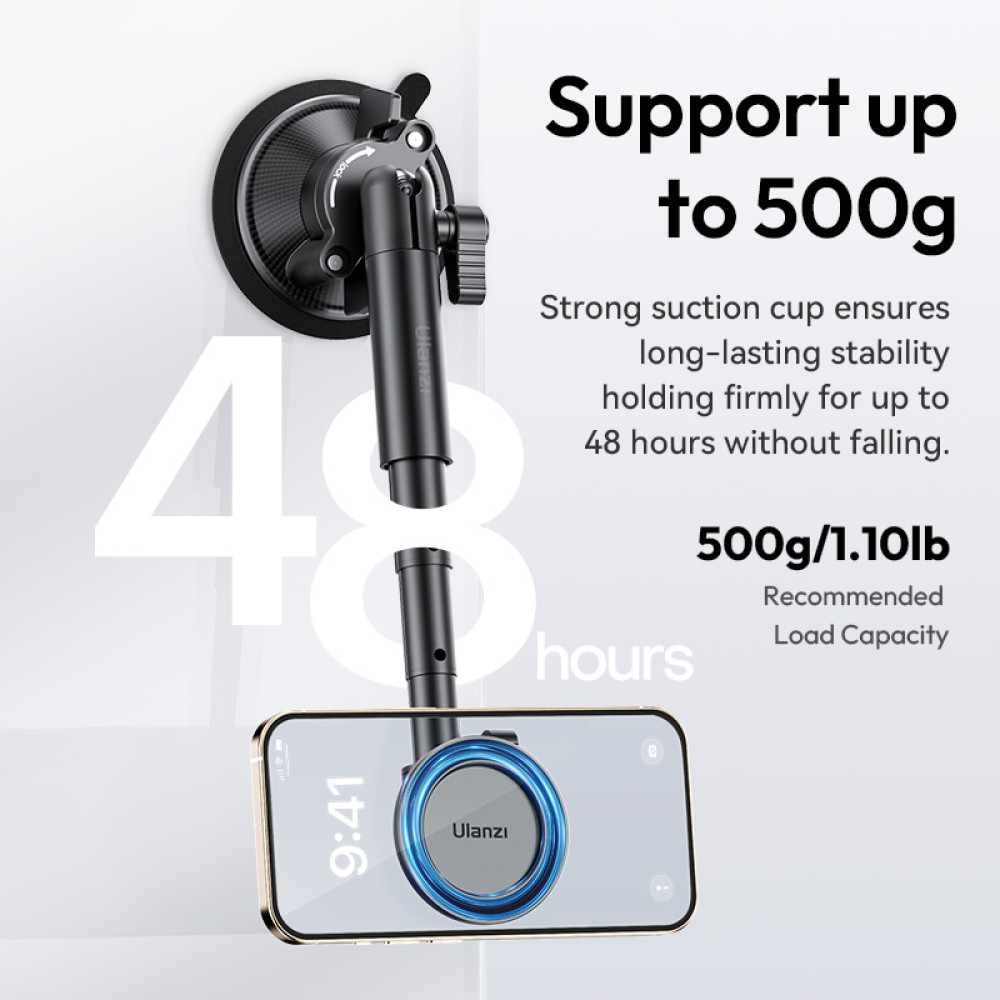 Ulanzi ZJ06 – это универсальный держатель на присоске, спроектированный для надежного крепления смартфона во время съемки в автомобиле, на витринах, гладких столах, плитке или других ровных непористых поверхностях. Модель ориентирована на мобильные видеомейкеры, блогеры и все, кому нужно стабильное и безопасное размещение телефона в динамических условиях: влаги, таймлапс из окна, навигация в авто, съемка интерьеров, кулинарные видео «над столом» и т.д. ZJ06 сочетает компактность, быструю установку и гибкую настройку ракурса за счет шарнирной головы.
