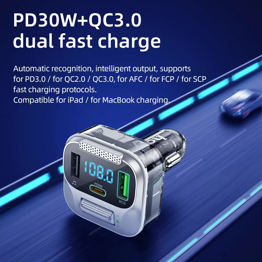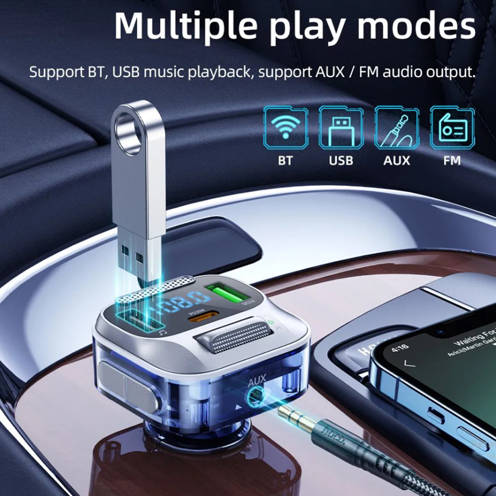 Модулятор Hoco E75 – технологичное устройство, которое станет отличным функциональным дополнением любого автомобиля. Устанавливаясь в гнездо прикуривателя и настраиваясь на одну со штатным FM-приемником волну, данная модель позволит заряжать разные гаджеты, воспроизводить музыку без проводов через акустику авто с флешки или смартфона, подключенного через встроенный модуль Bluetooth V5.0. Аксессуар реализован в стильном, практичном дизайне.