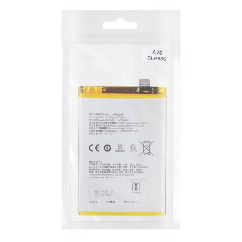 Аккумулятор для Oppo A76 (BLP885) — AAAA, без логотипа