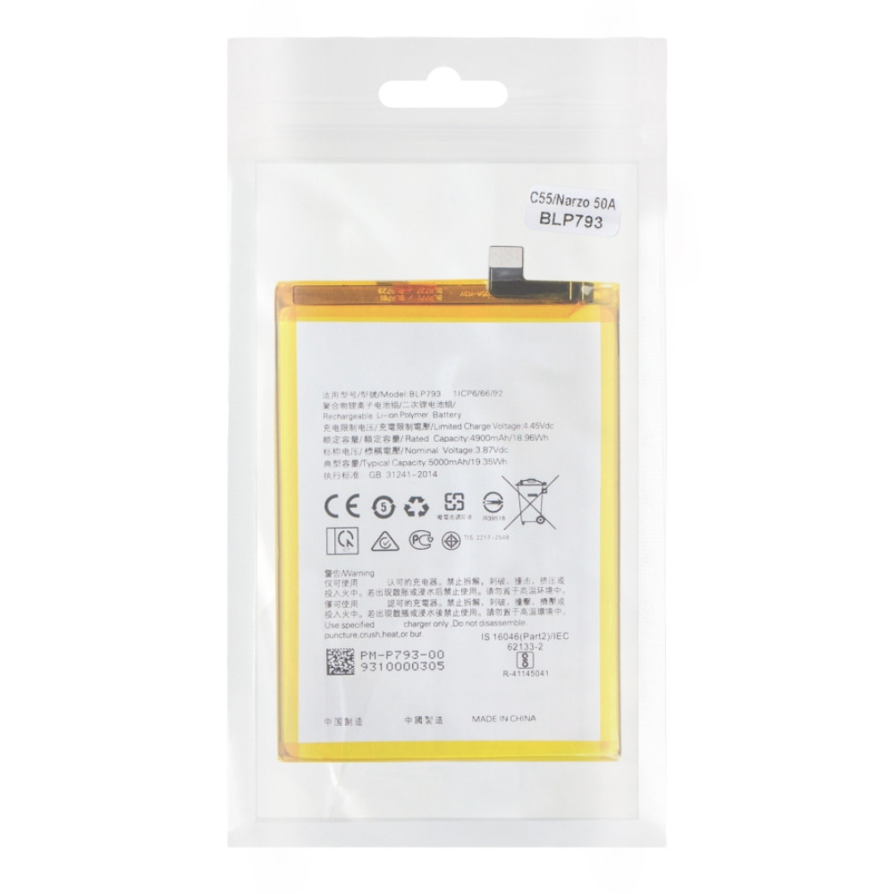 Аккумуляторная батарея для смартфона Realme C55/Narzo 50A (модель BLP793)