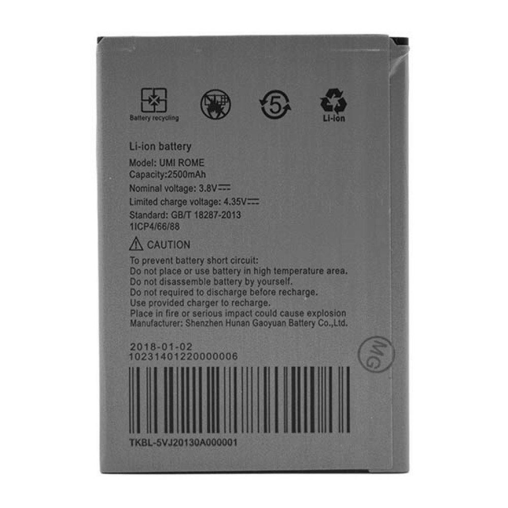 Однако производители смартфонов подумали и об этом. И поэтому неисправная батарея для UMI Rome может быть заменена на новую, и нет необходимости покупать целый новый мобильный телефон. Новый аккумулятор для UMI Rome имеет емкость 2500мAh что позволит гаджета  служить вам достаточно долго и без проблем поддерживать заряд долгий период времени.