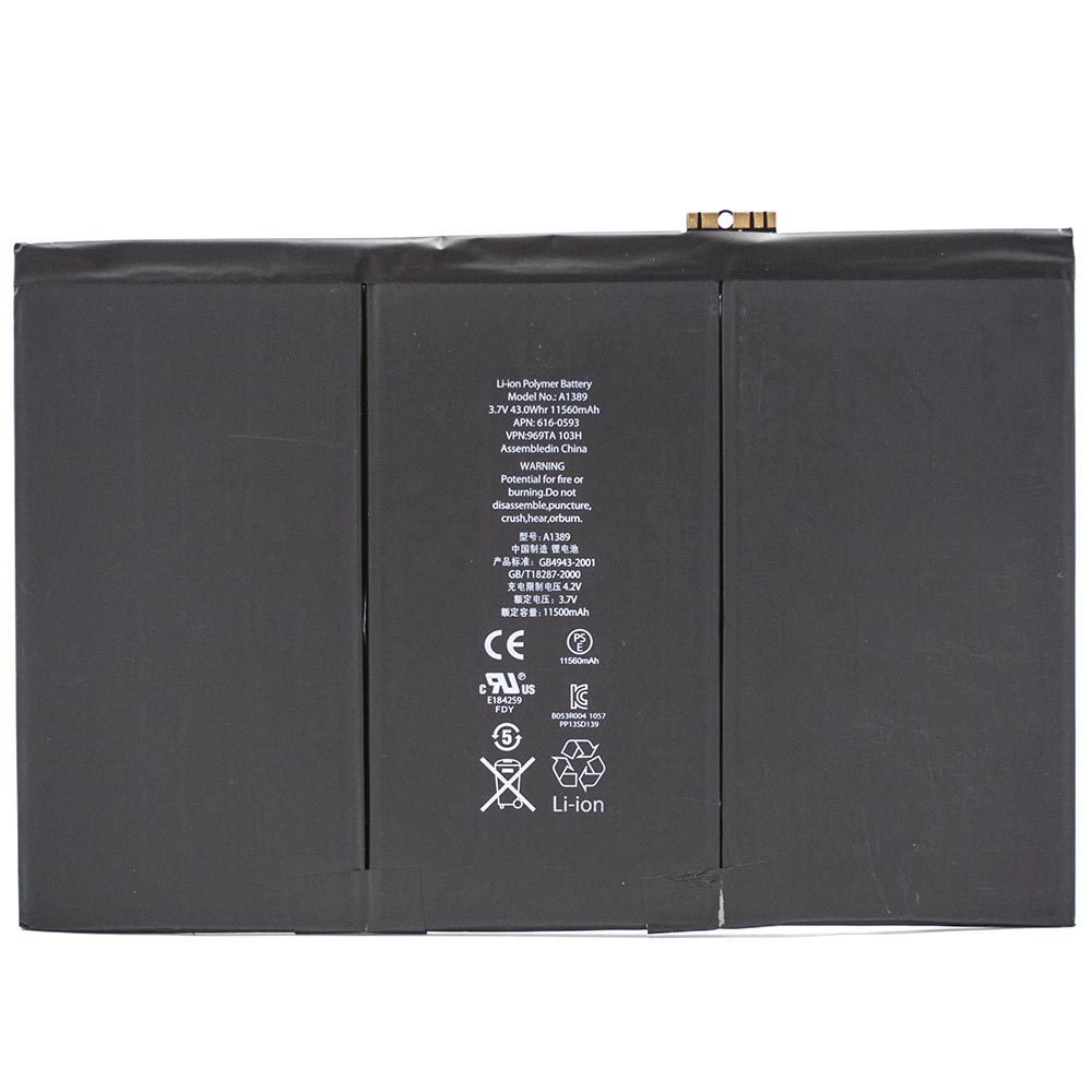 Однако производители смартфонов подумали и об этом. И поэтому неисправная батарея A1389 для iPad 3, iPad 4 может быть заменена на новую, и нет необходимости покупать целый новый мобильный телефон. Новый аккумулятор A1389 имеет емкость 11560мAh что позволит гаджета служить вам достаточно долго и без проблем поддерживать заряд долгий период времени.