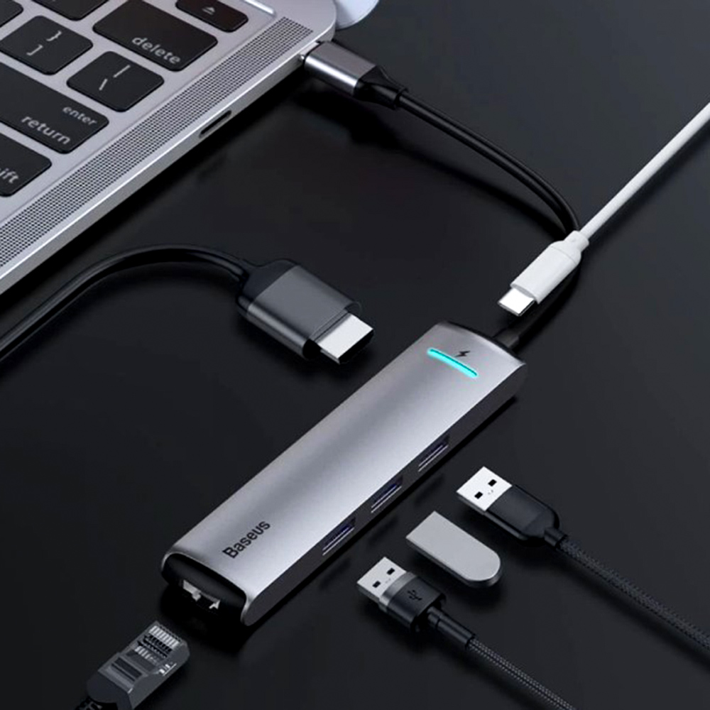 USB Хаб Baseus Mechanical eye - компактное устройство, которое поможет расширить функциональные возможности ноутбуков или настольных компьютеров, оснащенных современным интерфейсом Type-C.