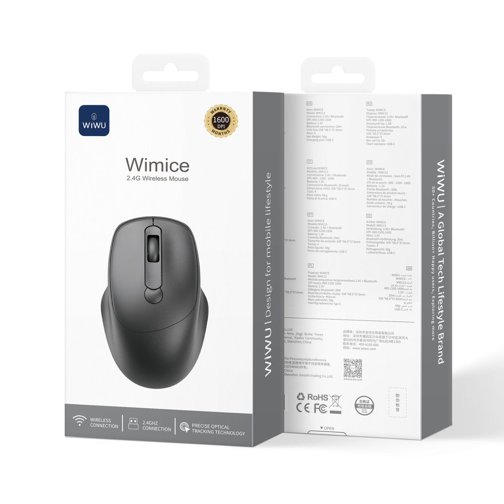 Создайте идеальные условия для концентрации с мышью WIWU WM113 . Благодаря специальной конструкции переключателей с пониженным уровнем шума, вы сможете работать в библиотеке, кафе или поздно вечером дома, не беспокоя окружающих громкими щелчками. Эргономичный корпус повторяет естественные изгибы ладони, снимая напряжение с запястья даже во время 8-часового рабочего дня.