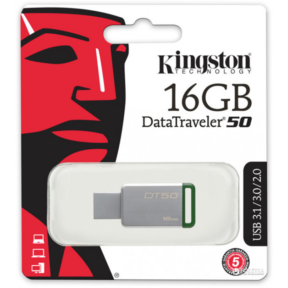 USB-флешка - это отличный выбор для хранения и переноса информации. Если Вы хотите всегда иметь всю необходимую информацию у себя - тогда это устройство идеальный вариант. В данной флешке металлический корпус, который является прочным и устойчивым. Учитывая недорогую стоимость данной флешки она прекрасно подойдет как для школьников, так и для студентов. Ведь, благодаря достаточному объему памяти флешки можно хранить необходимую Вам информацию. Скорость записи данных составляет 5 Мб / сек, а скорость чтения данных - 30 Мб / с. Учитывая, что данная флешка компактных размеров ее можно хранить и переносить в любом удобном месте. USB-флешка Kingston DataTraveler 50 поддерживает интерфейс USB 3.0, который также совместим с USB 2.0 и USB 3.1.