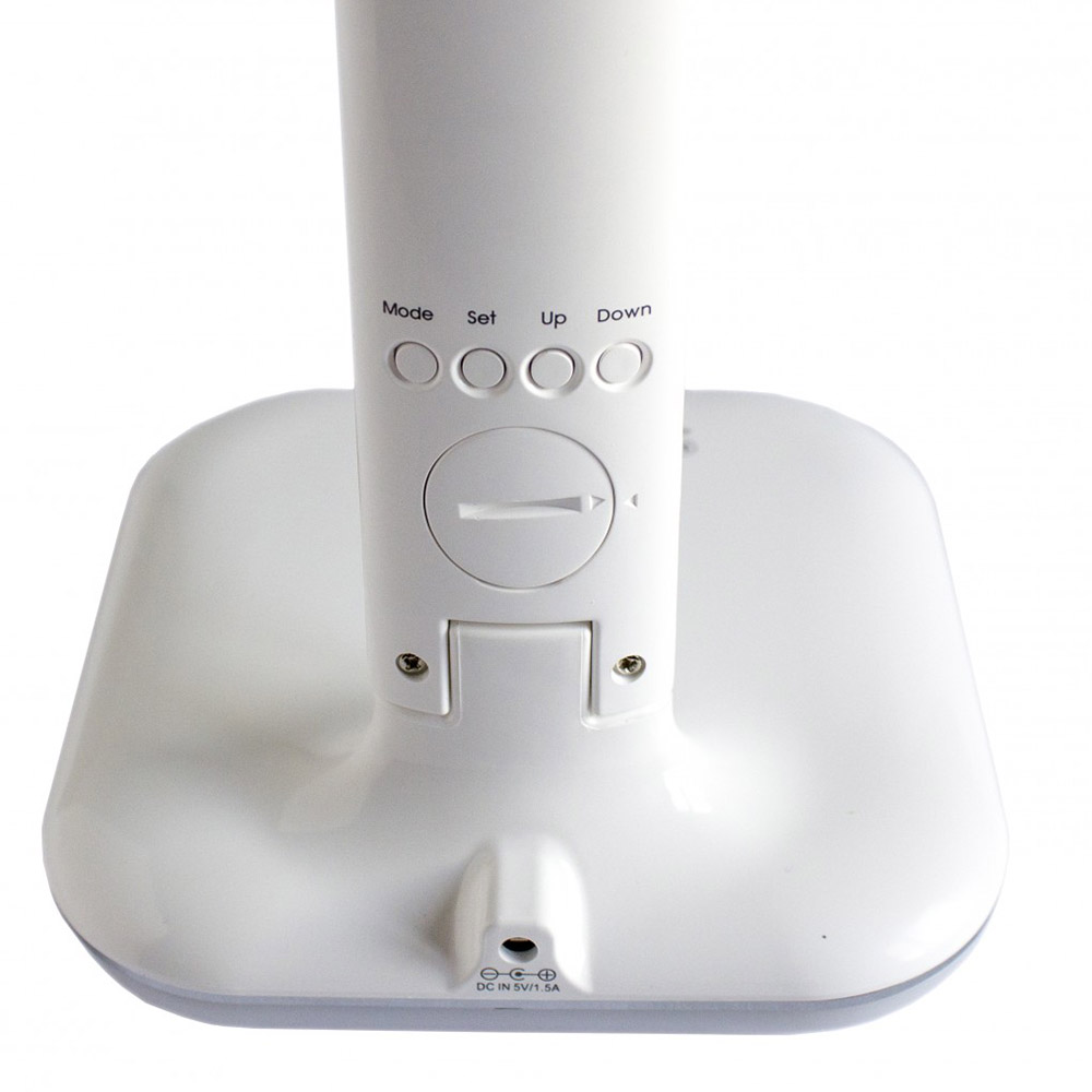 Лампа настольная имеет 3 световых режима: естественный свет 4000-4500K, холодный свет 5000-5500K, теплый свет 2800-3300K. Каждый режим можно отрегулировать по уровню интенсивности освещения, которых 5, то есть всего у вас есть на выбор 15 различных вариантов работы лампы.