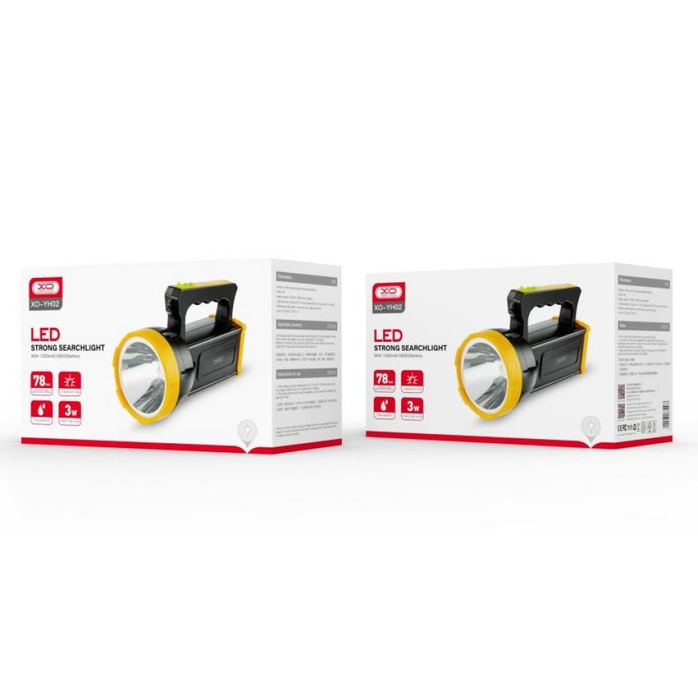 XO YH02 – это надежный ручной поисковый фонарь, который станет настоящим помощником в самых разных условиях: от кемпинга и туризма до поисковых операций и аварийных ситуаций. Он также будет полезен и в быту для освещения узких пространств или подсветки темных уголков дома. Устройство выполнено в практичном дизайне со стильными контрастными деталями, имеет компактные размеры и небольшой вес. Благодаря эргономичной ручке и петелькам для ремня, его легко держать в руке, можно носить на плече с помощью ремня или зафиксировать, например, на рюкзаке для удобной транспортировки. Влагозащищенный корпус фонаря качественной собран, изготовлен из ударостойкого пластика. Его идеально прозрачная линза диаметром 78мм изготовлена из прочного стекла. Алюминиевый рефлектор с зеркальной поверхностью обеспечивает эффективное рассеивание света от светодиода мощностью 3W и предотвращает перегрев, что значительно продлит срок службы устройства. На его ручке находятся прорезиненные кнопки управления и прикрытый заглушкой разъем для зарядки. Источником питания для него служит встроенный аккумулятор стандарта 18650 емкостью 1200mAh. Фонарь может работать в одном из трех режимов: SOS, обычном и с максимальной яркостью. Полного уровня заряда хватит на 4 часа его непрерывной работы с максимальной мощностью, 8 часов – в обычном режиме и 48 часов – в режиме SOS. Фонарь комплектуется кабелем Type-C для зарядки и ремнем.