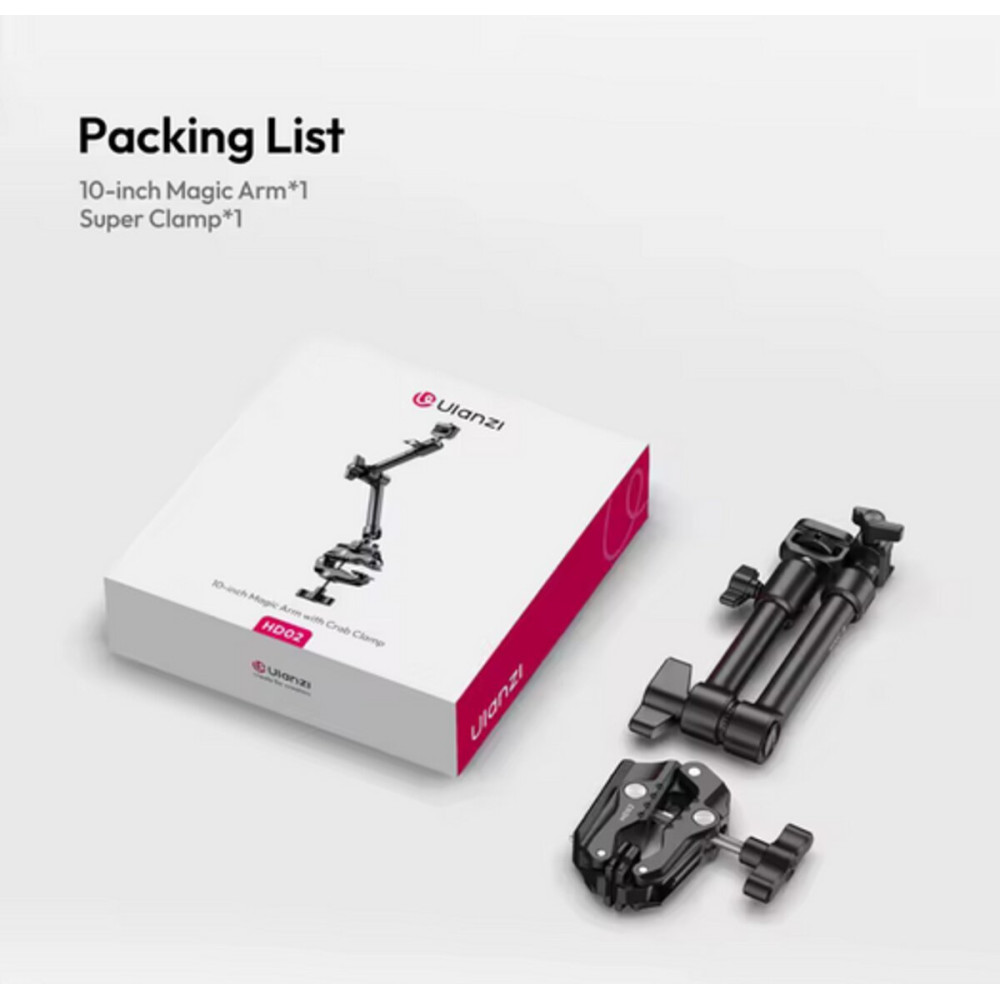 Ulanzi HD02 10-inch Magic Arm Kit (T098 HD02) - це універсальне кріплення, яке підійде для різних пристроїв. У комплект входять алюмінієвий затискач «краб» та шарнірне кріплення Magic Arm завдовжки 25 см.