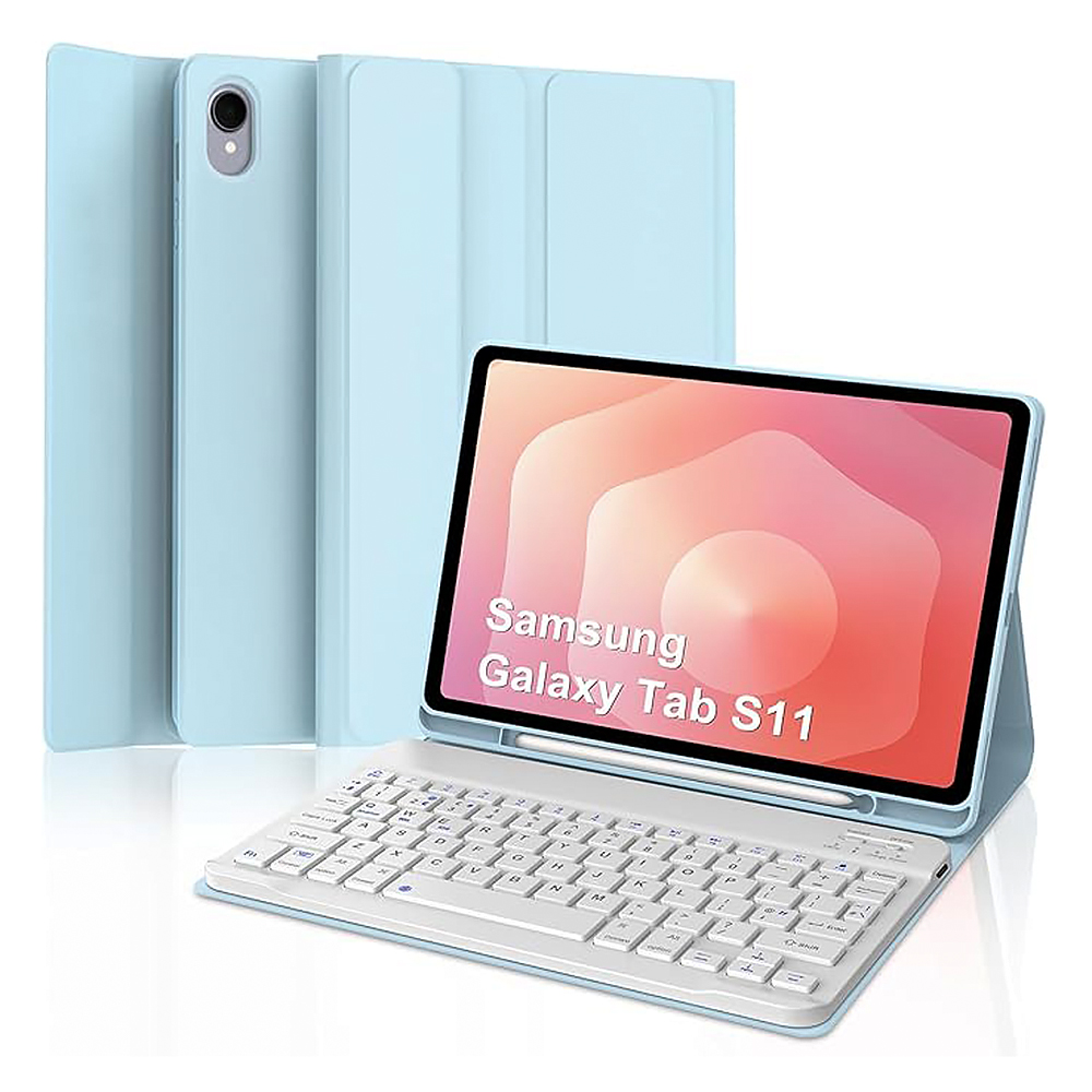 Головна перевага моделі — знімна бездротова клавіатура з магнітним кріпленням. Вона надійно фіксується на внутрішній поверхні чохла, але за потреби її можна легко від’єднати. Клавіатура підключається через Bluetooth і забезпечує стабільну роботу на відстані до 10 метрів, будучи сумісною не лише з планшетом, а й зі смартфонами чи ПК. Елегантний дизайн у поєднанні з практичністю робить цей чохол незамінним аксесуаром для тих, хто цінує стиль та мобільність.