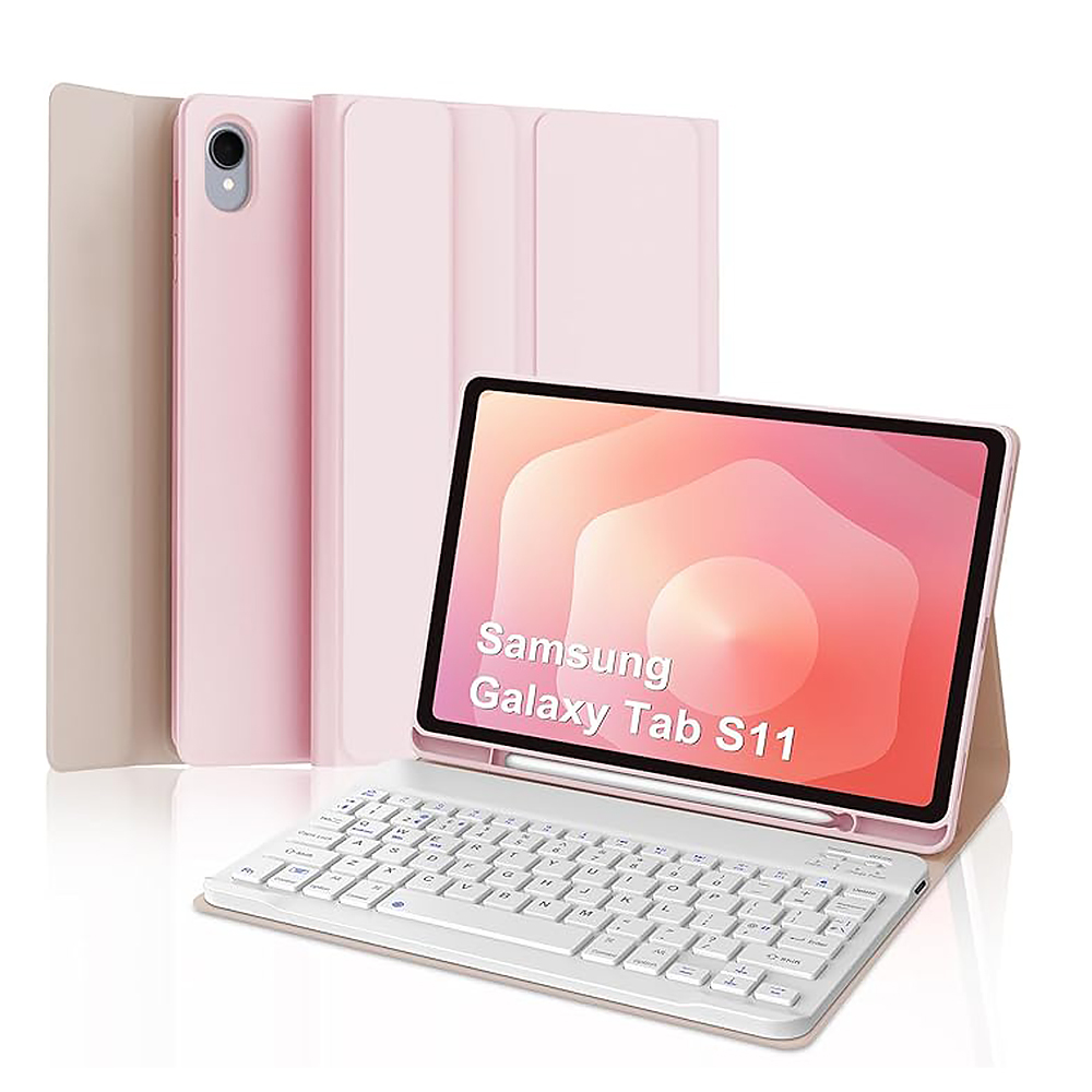 Головна перевага моделі — знімна бездротова клавіатура з магнітним кріпленням. Вона надійно фіксується на внутрішній поверхні чохла, але за потреби її можна легко від’єднати. Клавіатура підключається через Bluetooth і забезпечує стабільну роботу на відстані до 10 метрів, будучи сумісною не лише з планшетом, а й зі смартфонами чи ПК. Елегантний дизайн у поєднанні з практичністю робить цей чохол незамінним аксесуаром для тих, хто цінує стиль та мобільність.