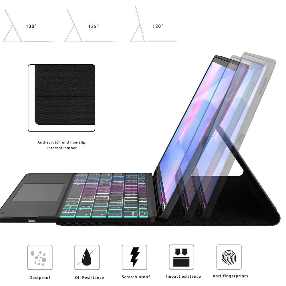 Клавіатура з магнітним кріпленням підключається через Bluetooth , забезпечуючи стабільну роботу на відстані до 10 метрів. Вона сумісна не тільки з планшетами, але й іншими пристроями, такими як смартфони та ПК. Можливість легкого від'єднання клавіатури робить використання планшета гнучким та зручним для будь-яких завдань. RGB-підсвічування дозволяє змінювати кольори, підлаштовуючись під ваш настрій або робочу обстановку.