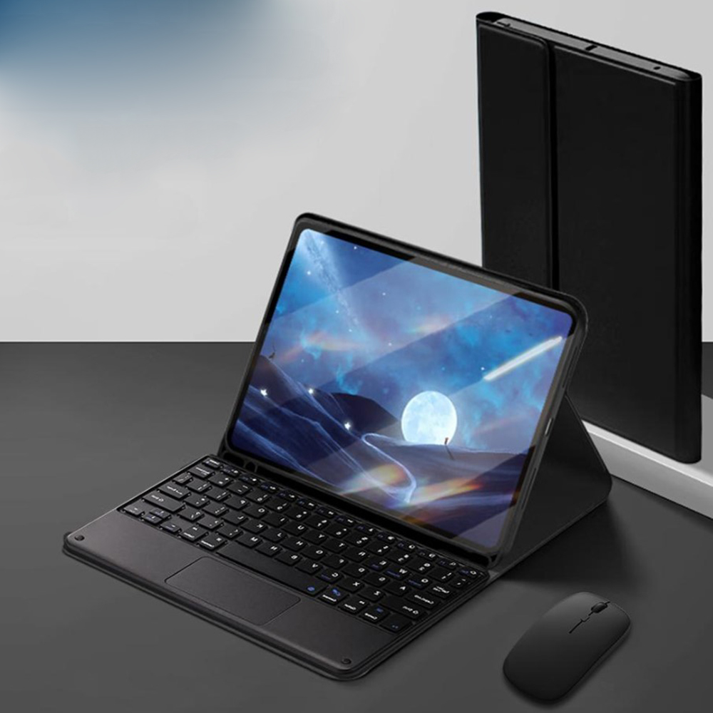 Головна перевага моделі — знімна бездротова клавіатура з магнітним кріпленням. Вона надійно фіксується на внутрішній поверхні чохла, але за потреби її можна легко від’єднати. Клавіатура підключається через Bluetooth і забезпечує стабільну роботу на відстані до 10 метрів, будучи сумісною не лише з планшетом, а й зі смартфонами чи ПК. Елегантний дизайн у поєднанні з практичністю робить цей чохол незамінним аксесуаром для тих, хто цінує стиль та мобільність.