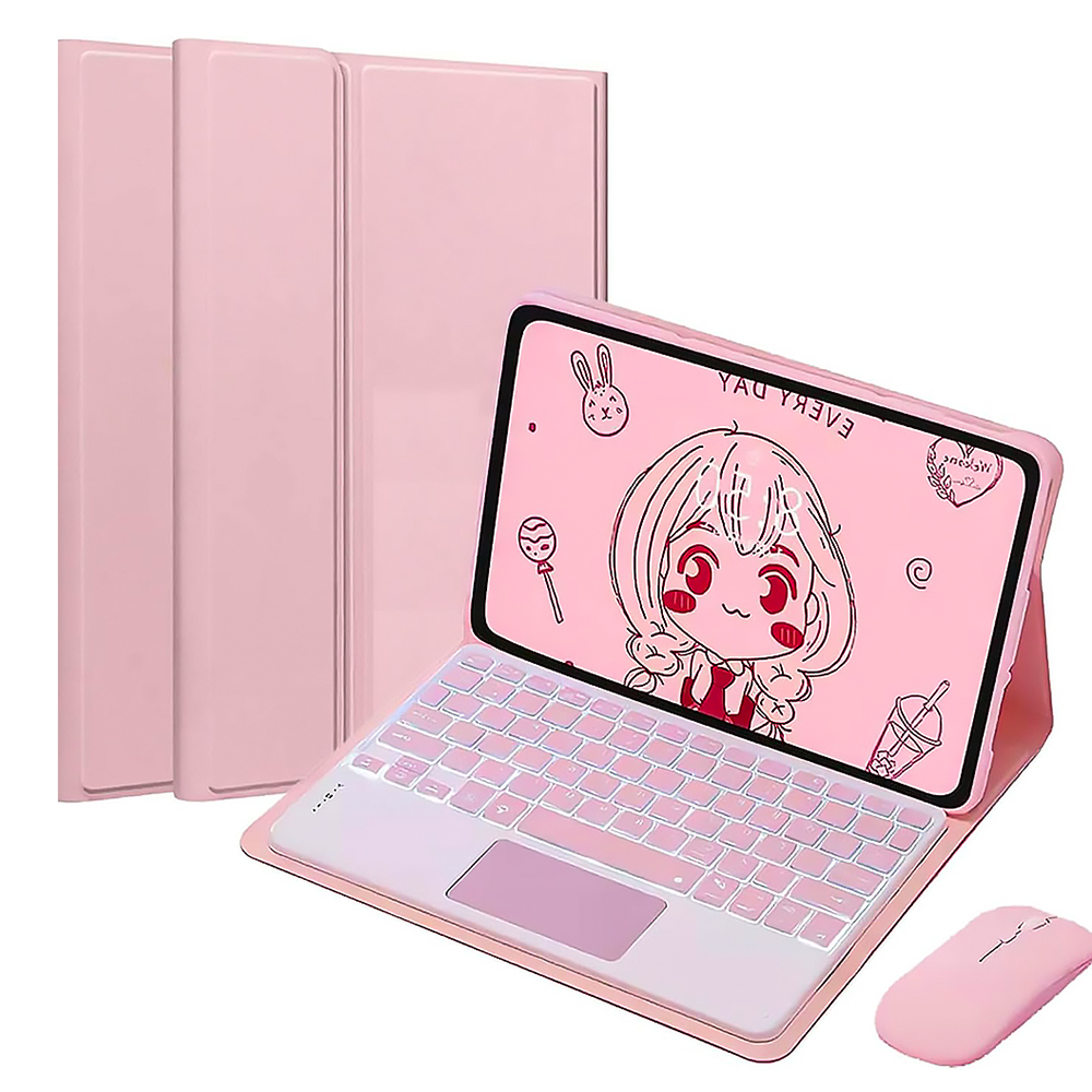 Чохол із Bluetooth - клавіатурою Magnet Flip Cover для Samsung Galaxy Tab S10 lite з RGB підсвіткою, тачпадом та мишкою рожевий