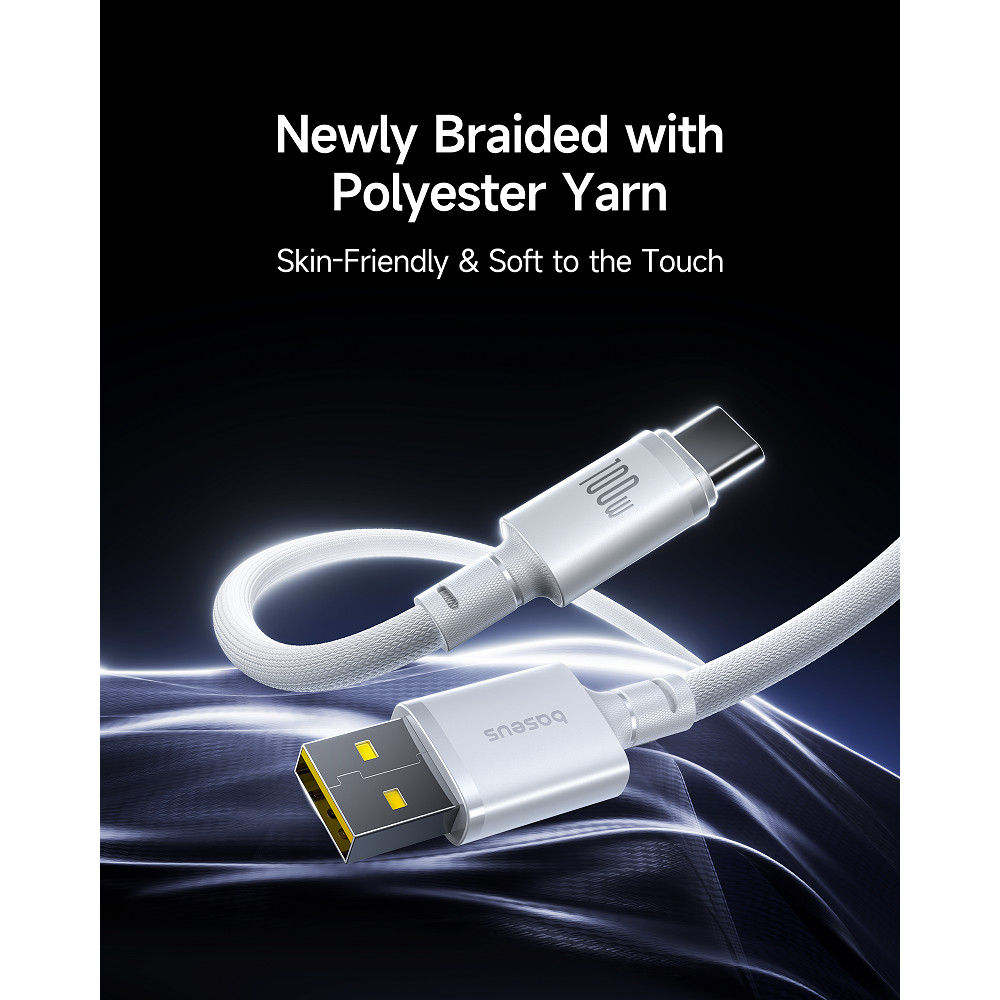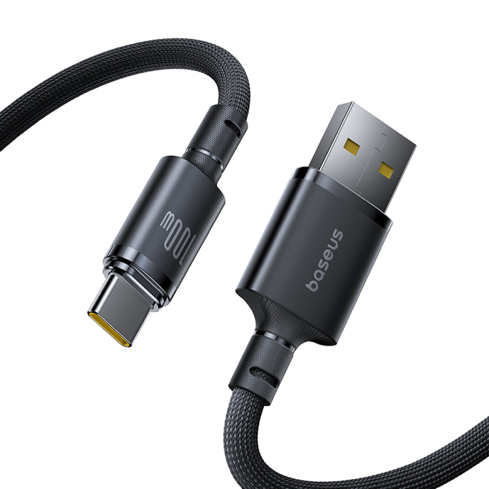 Виготовлений із високоякісних матеріалів із підвищеною стійкістю до перегинів та зносу, кабель забезпечує довговічність навіть при інтенсивному використанні. Виготовлений із міцного та зносостійкого нейлону, що забезпечує стійкість до перегинів і пошкоджень. Baseus New Braided Fast Charging Cable USB-A to USB-C 100W/7.5W 1m Cosmic Black — це ідеальний вибір для тих, хто потребує надійного, потужного та довговічного кабелю для швидкого заряджання і передачі даних.