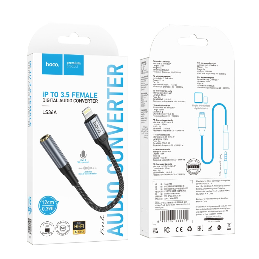 Hoco LS36A — це високоякісний аудіокабель-перехідник, призначений для підключення класичних дротових навушників, гарнітур або колонок до пристроїв Apple. Аксесуар забезпечує бездоганну передачу аудіосигналу в форматі Hi-Fi, зберігаючи природну глибину та чистоту звучання. Завдяки продуманій схемі, цей аудіокабель повністю підтримує функціональність мікрофона та кнопок дистанційного керування на дротових аксесуарах.