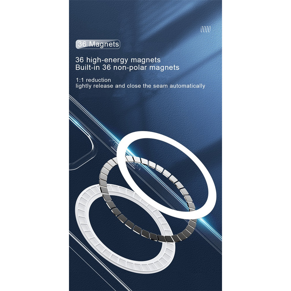 Практичне доповнення чохла — 36 вбудованих магнітів, які забезпечують точне позиціонування та стабільний процес заряджання гаджета за допомогою технології MagSafe.