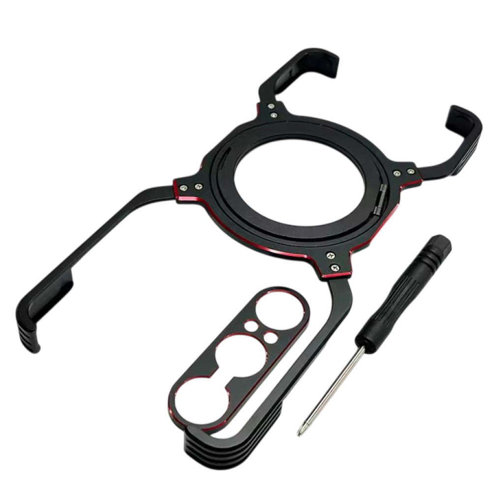 Магнітне кільце обертається на 360° і може використовуватись як підставка або тримач. Окремий модуль для захисту камери фіксується поверх блоку об'єктивів, запобігаючи подряпинам і потраплянню пилу.