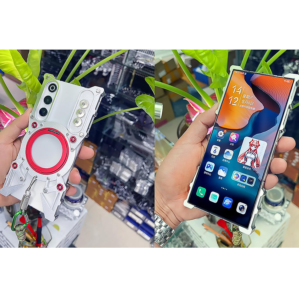 Виготовлений із високоякісного металу, чохол забезпечує підвищену міцність і стійкість до ударів, падінь та подряпин. Його кібер-дизайн із гвинтовими елементами та геометричними лініями додає смартфону унікального та технологічного вигляду.