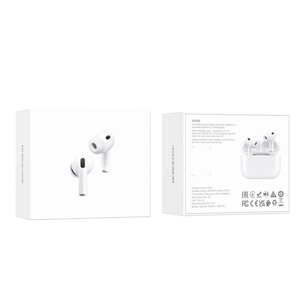 Бездротові навушники BOROFONE BW98 — сучасні та практичні TWS‑навушники, створені для щоденного використання з комфортом. Завдяки Bluetooth 6.0 і чіпу Jerry JL AC6983 підключення до смартфона, планшета чи ноутбука відбувається швидко і стабільно, без провалів сигналу.