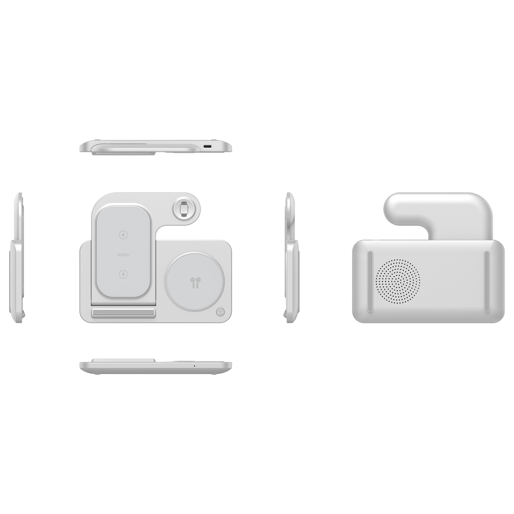 WIWU Wi-W020 — це інтелектуальна екосистема для одночасного заряджання трьох ваших основних гаджетів: смартфона, смарт-годинника та бездротових навушників. Завдяки унікальному складаному корпусу, пристрій легко трансформується з компактної панелі у зручну підставку, що дозволяє заощаджувати простір на робочому столі або в подорожах. Станція автоматично розпізнає тип підключеного девайса та підбирає оптимальну потужність від 2.5 до 15 Вт, забезпечуючи швидке та безпечне відновлення енергії.