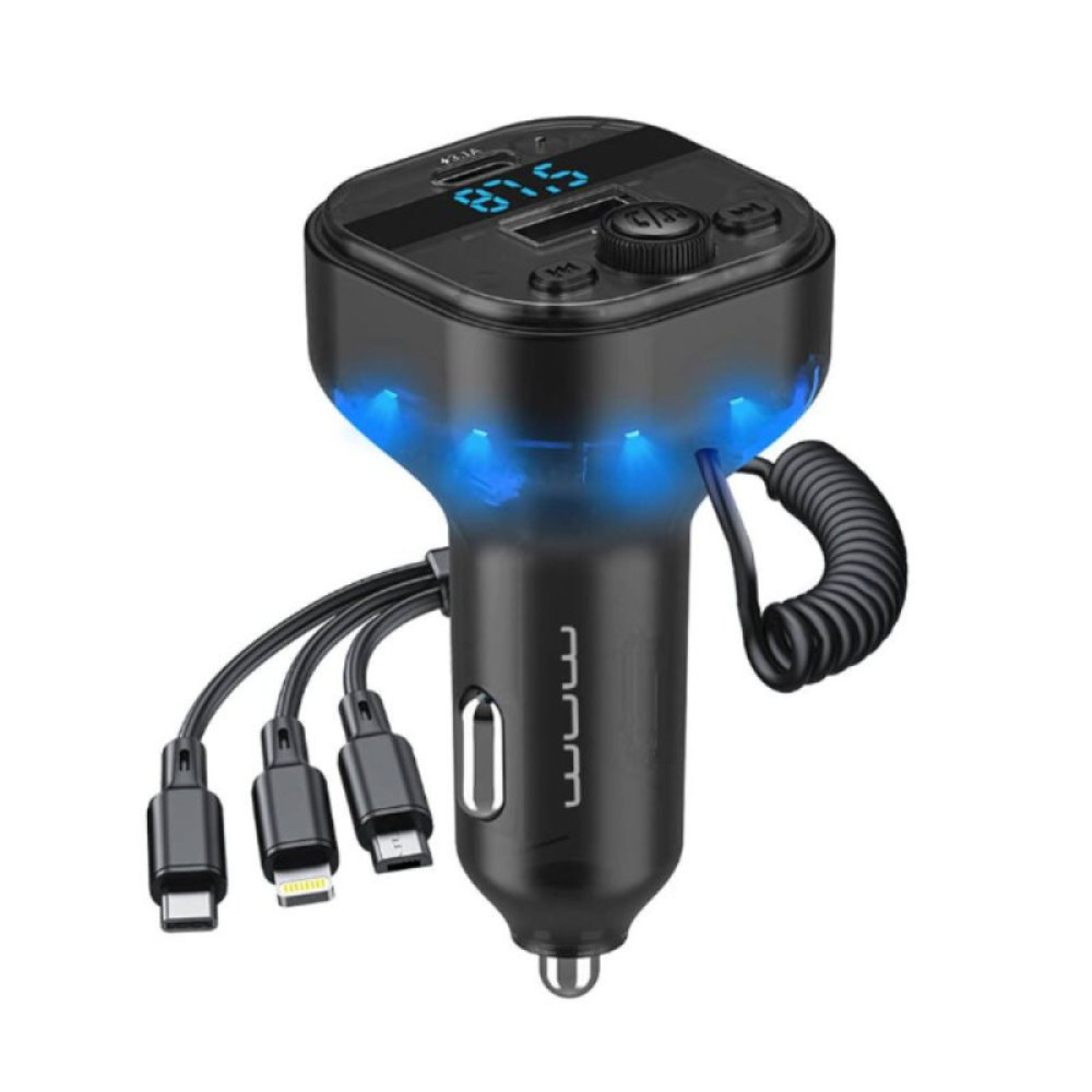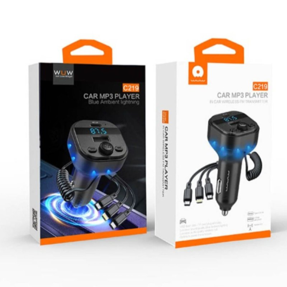 WUW-C219 — це універсальний мультимедійний центр для вашого автомобіля, що поєднує функції швидкої зарядки та бездротової трансляції аудіо. Пристрій дозволяє відтворювати музику зі смартфона або карти пам'яті безпосередньо на штатну акустику авто через FM-частоту. Завдяки вбудованому мікрофону та функції Hands-Free, водій може приймати дзвінки по гучному зв’язку, не відволікаючись від керування, що значно підвищує безпеку поїздки.