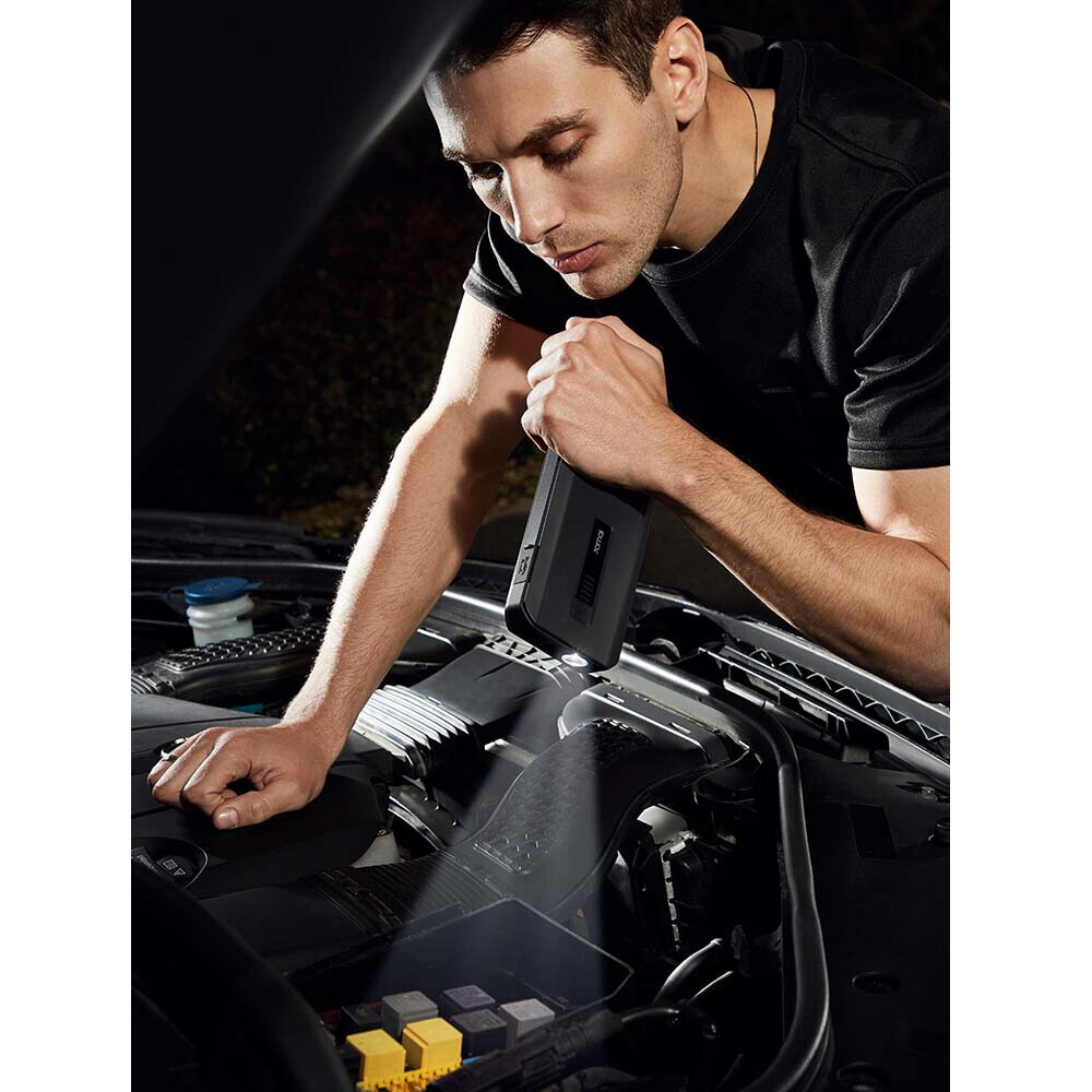 Зовнішній вигляд пристрою є сучасним дизайном чорного кольору. Він чудово відчувається в долоні, а завдяки невеликим розмірам 70mai Jump Starter Max Midrive PS06 легко вміщується в невеликій сумочці. Місткість акумулятора становить 18000 мАг, при цьому вбудований індикатор завжди покаже кількість заряду. Модель обладнана яскравим ліхтариком, який стане в нагоді при запуску автомобіля в темний час доби.