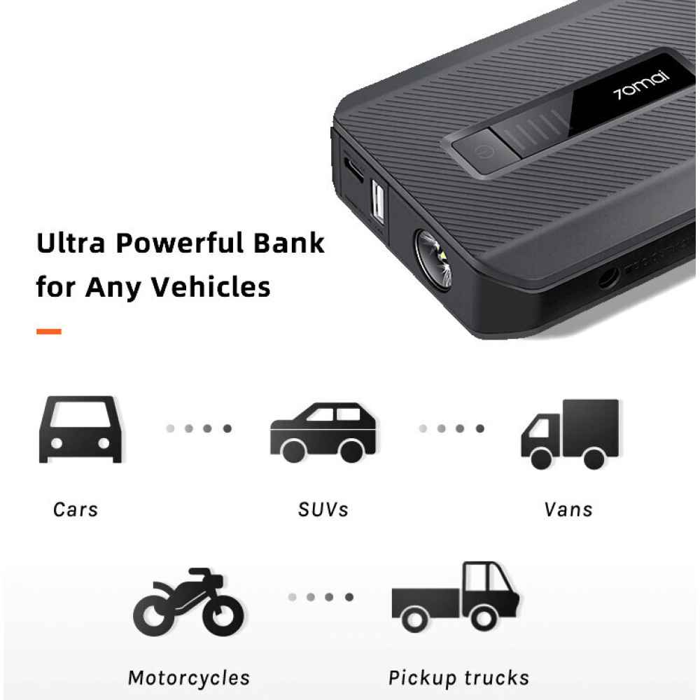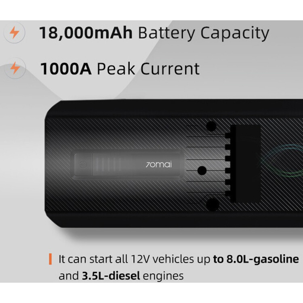 70mai Jump Starter Max Midrive PS06 дозволяє швидко запустити дизельні транспортні засоби зі стартовою потужністю до 3,5 літра, а також бензинові судна з об'ємом до 8,0 літрів. Для цього сила струму зовнішнього акумулятора становить 450 А, а пікове значення сягає 1000 А.