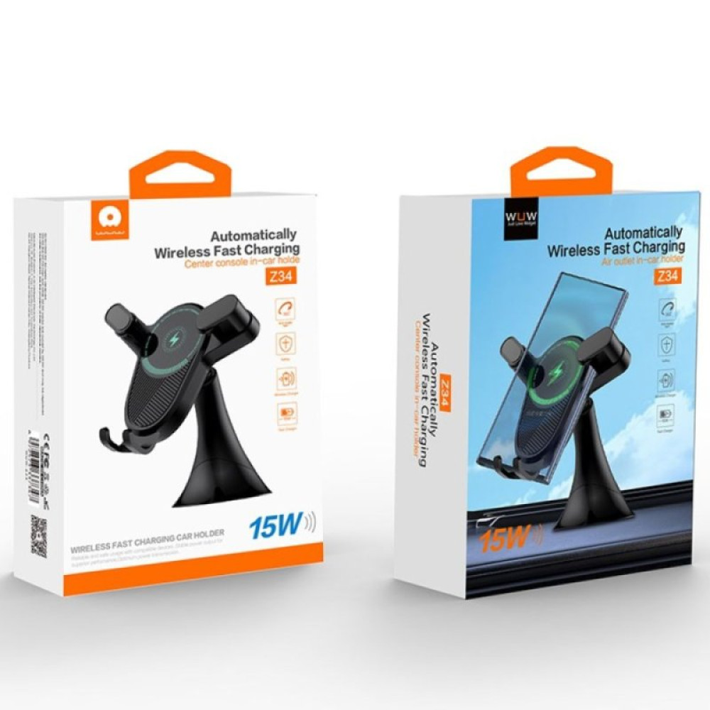 Автомобільний тримач із функцією швидкої бездротової зарядки WUW-Z34 (15W / Qi Standard)