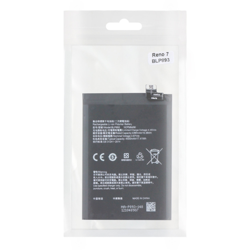 Акумулятор для Oppo Reno 7 / BLP893 - AAAA, без логотипу