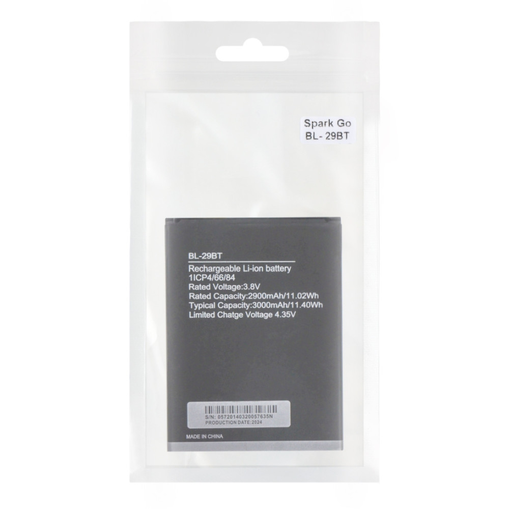 Акумулятор для смартфона Tecno Spark Go , модель BL-29BT . Клас якості AAAA без фірмового маркування (no LOGO). Забезпечує сумісність з оригінальними технічними характеристиками пристрою та стабільним живленням.