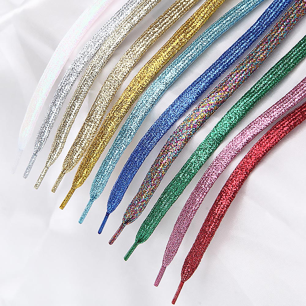 Щільне двошарове плетіння забезпечить довготривале користування аксесуаром без зносу. Нитка, з якої виготовлені шнурки, міцна та стійка до розривів, а металізовані волокна додають блиску та виділятимуть взуття з-поміж усіх інших.