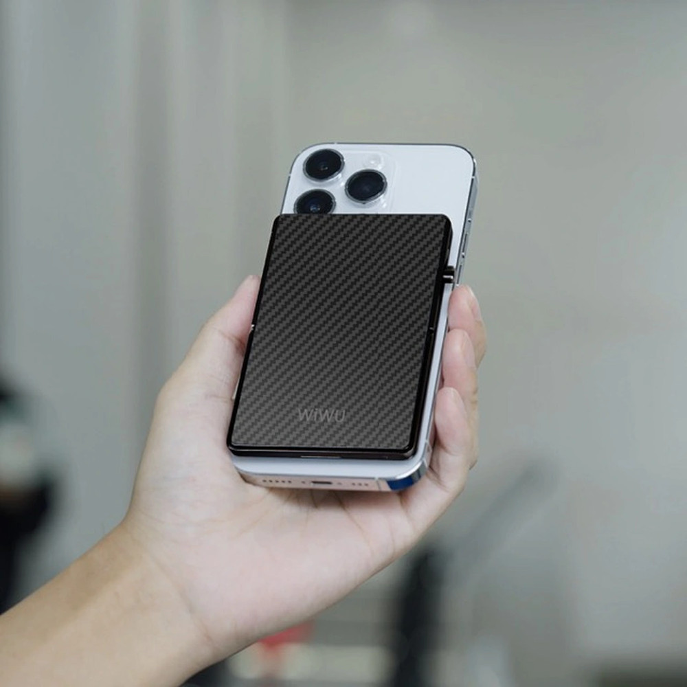 Магнітний картхолдер WIWU Warriors Carbon MW-007 із захистом RFID та металевою підставкою