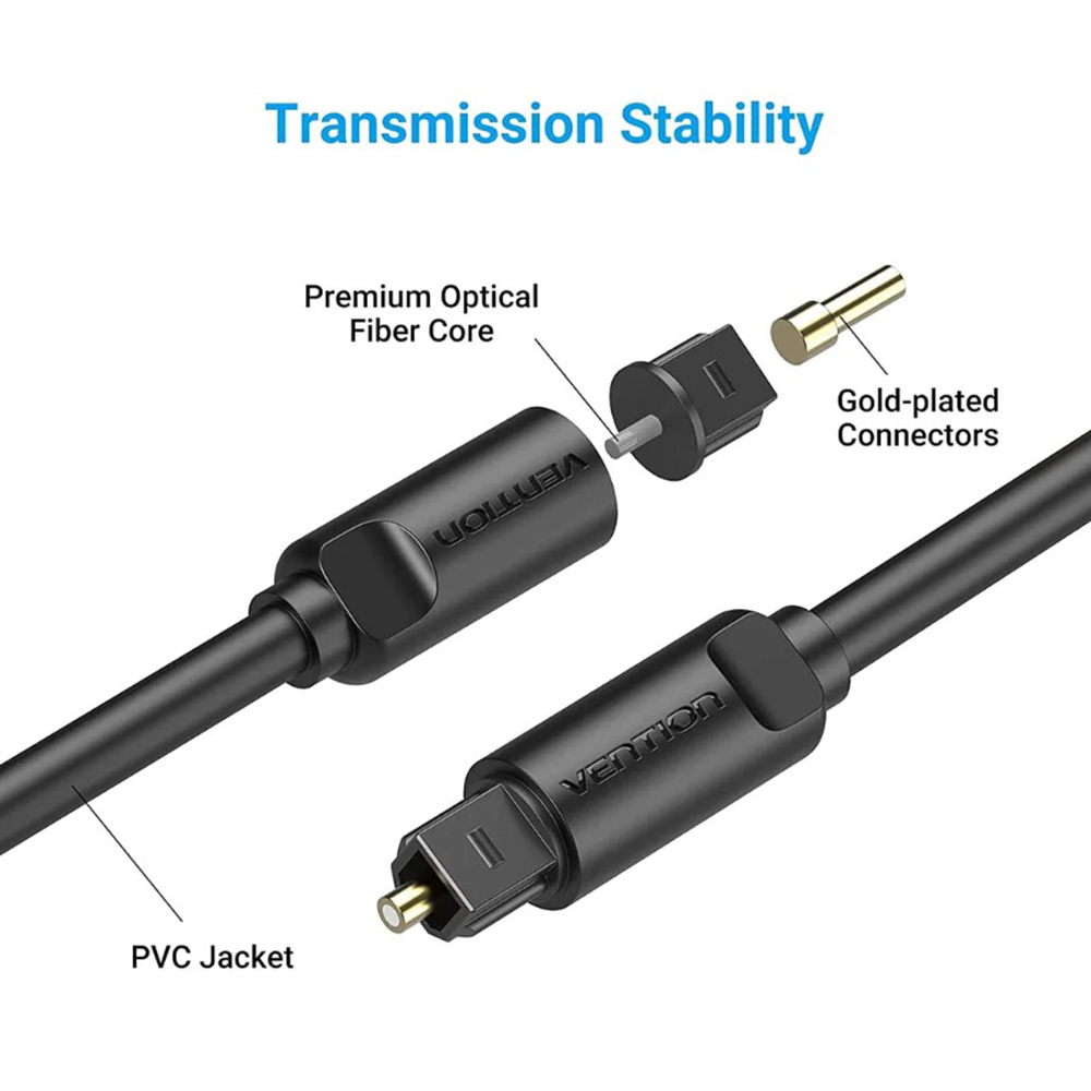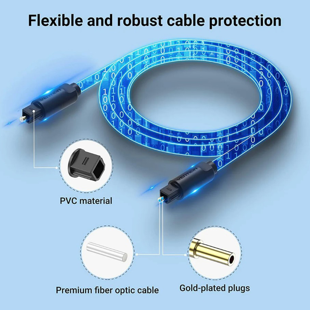 Цифровий оптичний аудіокабель від VENTION має повністю гнучку оболонку з ПВХ і виготовлений для забезпечення високоякісних гнучких оптичних кабелів з максимально тривалим терміном служби.