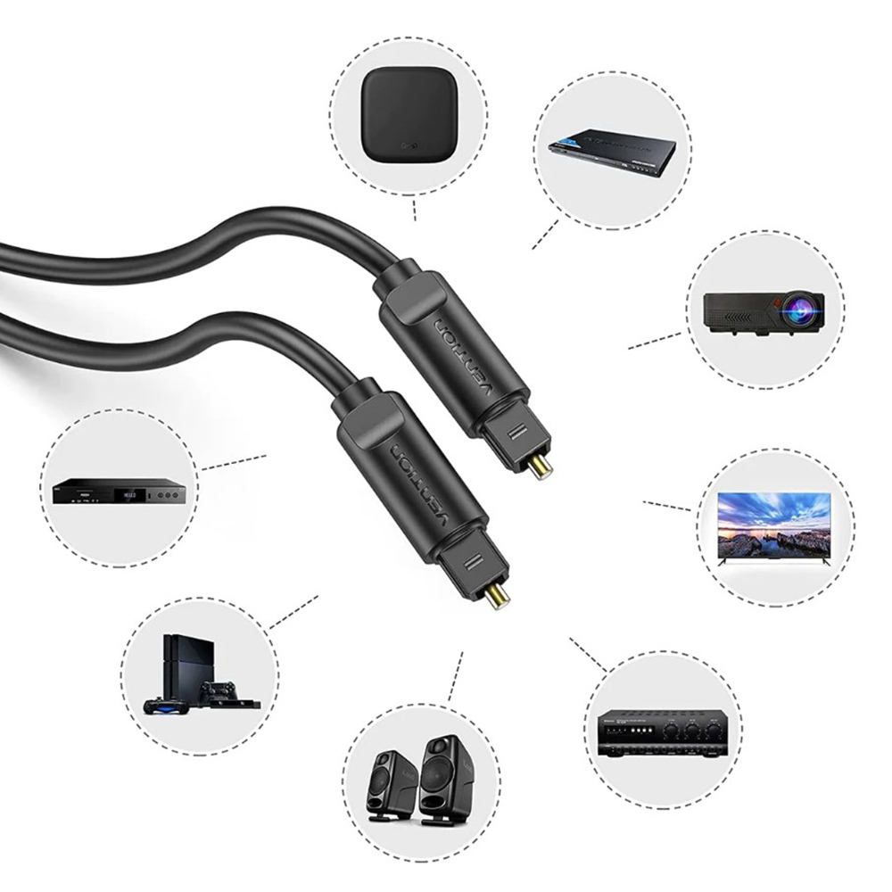 Оптичний аудіокабель VENTION сумісний із стандартними та HD-пристроями з роз'ємами Toslink. Ці кабелі ідеально підходять для звукової панелі ресивера/підсилювача, аудіопроцесора, ЦАП, телевізора та PS4, Playstation, ігрової системи Xbox і т.д.