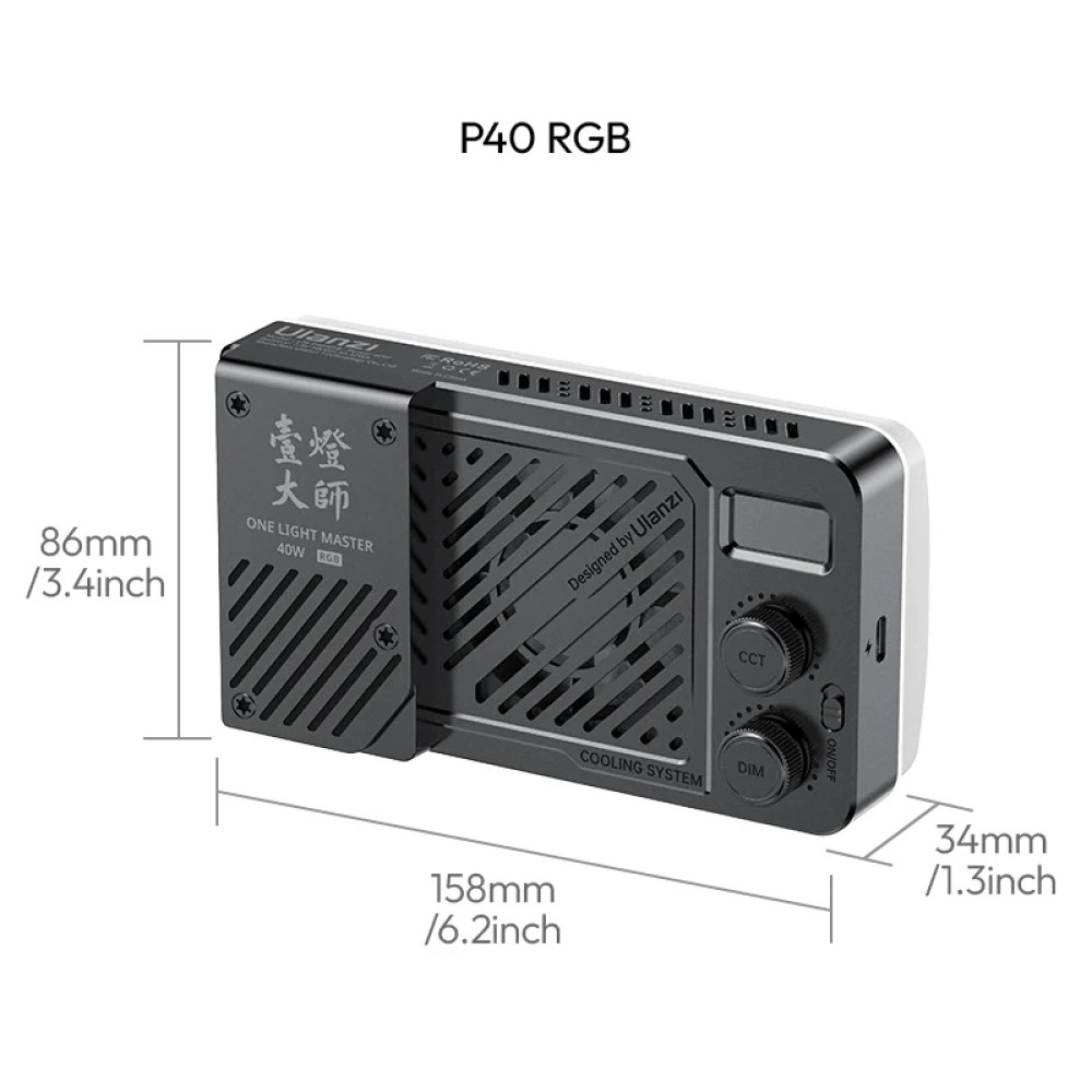 Ulanzi LM-P40RGB — компактний портативний освітлювач, створений для максимальної зручності використання. Легко керується однією рукою, дозволяючи швидко налаштовувати світло в будь-якому місці. Потужність 40 Вт забезпечує насичене та рівномірне освітлення, висока яскравість і точність створюють чітку картинку без втрат якості. Вбудований акумулятор 5000 mAh / 7.4V (37Wh) з підтримкою швидкої зарядки PD через USB-C дозволяє працювати до 35 хвилин на максимальній яскравості та до 1 години 20 хвилин при 50%.