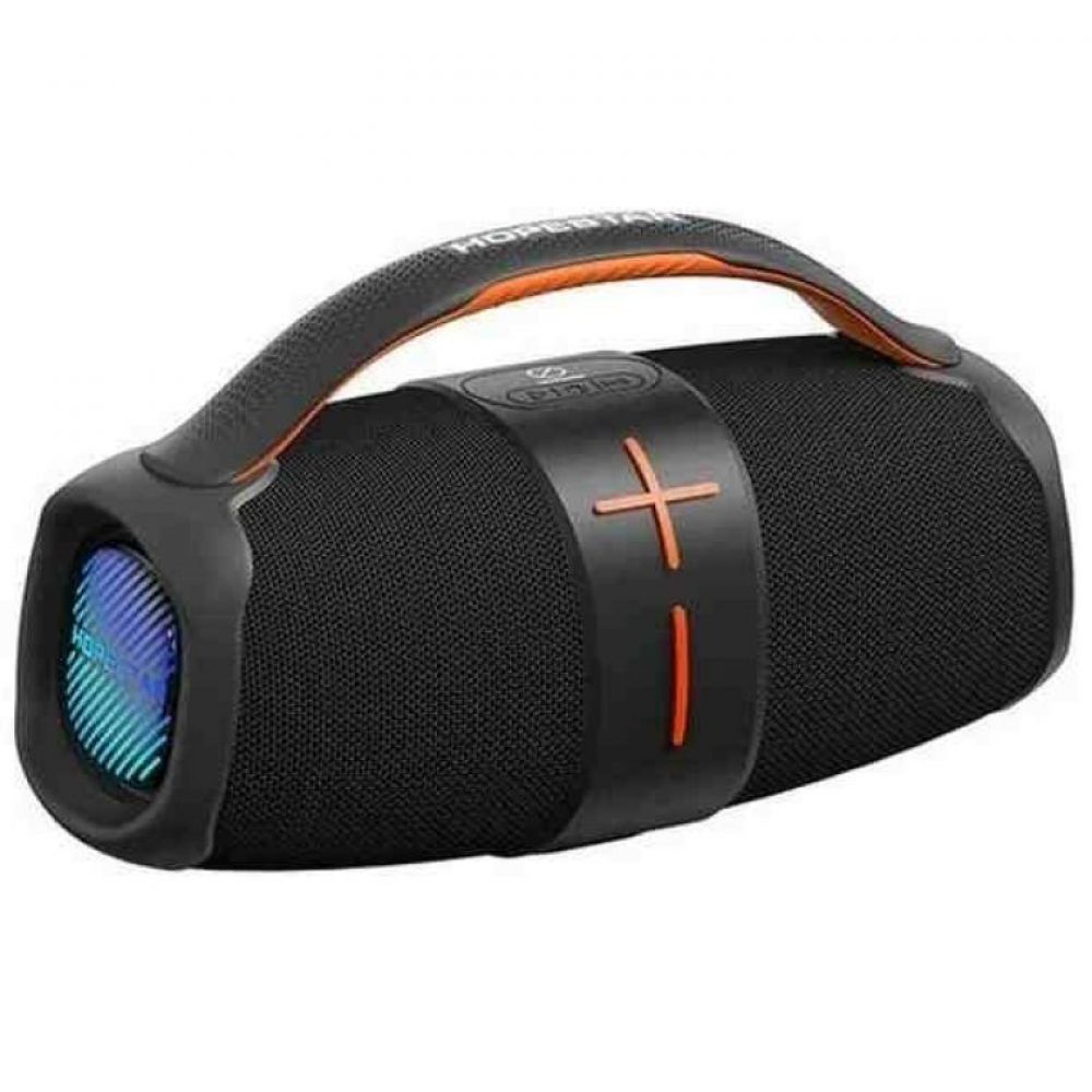 Hopestar H60 - це досить компактна, але неймовірно потужна портативна колонка, створена для тих, хто веде активний спосіб життя і не бажає розлучатися з улюбленою музикою за жодних обставин. Модель реалізована в сучасному, практичному дизайні та лаконічно впишеться у будь-який інтер'єр. Вона стане чудовим вибором для повсякденної експлуатації, справжнім помічником при проведенні сімейних свят та вечірок, допоможе весело провести час у компанії друзів. Завдяки захисту від води, невеликій вазі та ергономічній ручці її зручністю можна брати із собою на відпочинок біля басейну, на море або у похід на природу. Корпус пристрою виготовлений з міцного пластику та надійно зібраний, виконаний в оригінальній, обтічній формі зі сталою основою та посиленими торцями. На одному з його боків знаходяться великі кнопки регулювання гучності, а на другому - роз'єми, які прикриті заглушкою. Модель підтримує провідне та бездротове з'єднання з джерелом звук через роз'єм AUX і модуль Bluetooth V5.3, може відтворювати треки з карт пам'яті TF і USB флешок, використовуватися для прийому вхідних на смартфон дзвінків. Крім того, вона підтримує паралельне підключення двох колонок і з успіхом може використовуватися без носіїв інформації та зовнішніх пристроїв завдяки вбудованому FM-приймачу. У її торцях знаходяться мембрани пасивних низькочастотних динаміків, які підсвічуються RGB світлодіодами та у поєднанні з парою вбудованих широкосмугових динаміків загальною потужністю 20Вт відтворюють гучний, насичений звук у широкому частотному діапазоні з глибокими басами. Вбудована батарея має ємність 3000mAh, що дозволяє йому безперервно працювати протягом 6 годин.