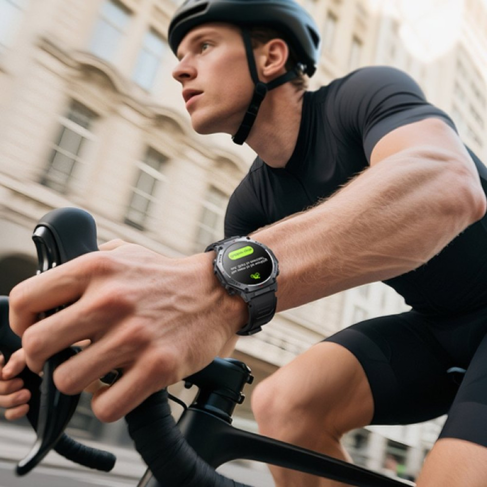 Яскравий AMOLED-дисплей 1.43″ відтворює чітке й насичене зображення, а сенсорне керування разом із механічними кнопками робить управління інтуїтивним. Інтерфейс підтримує 21 мову, включно з українською. Bluetooth 5.3 забезпечує стабільне підключення до смартфона, що дозволяє приймати дзвінки, керувати музикою, камерою та отримувати сповіщення прямо з годинника.